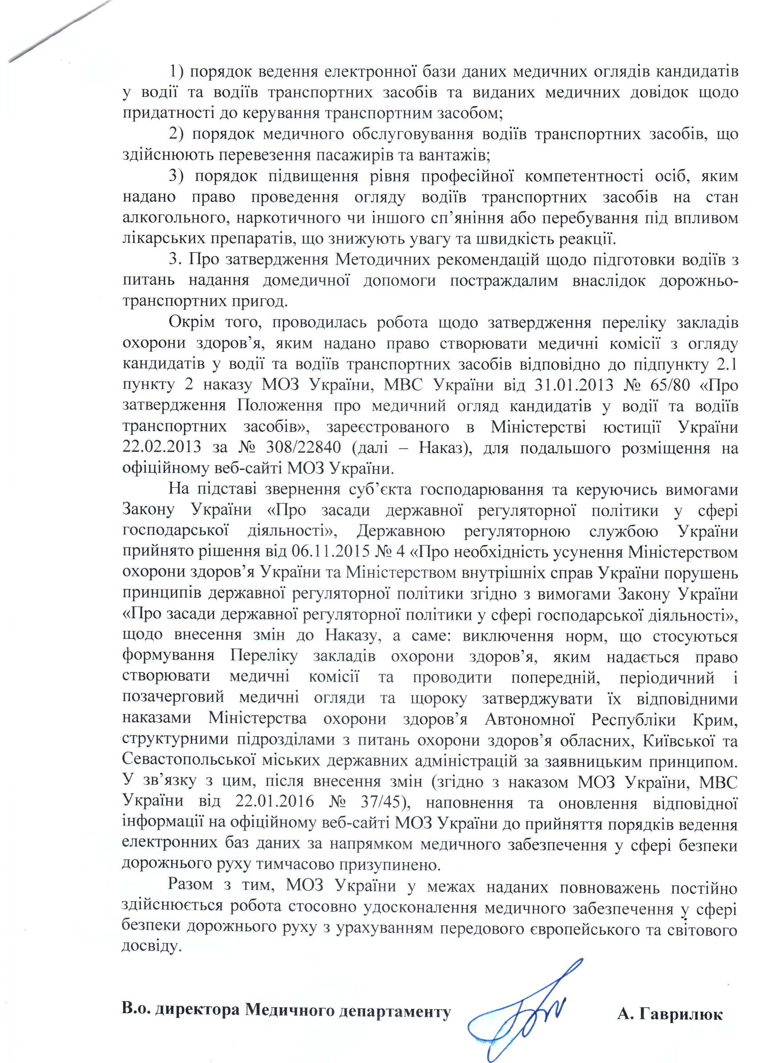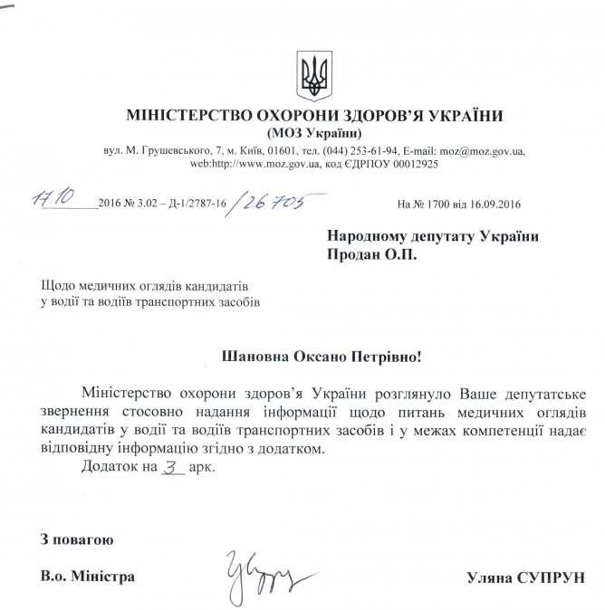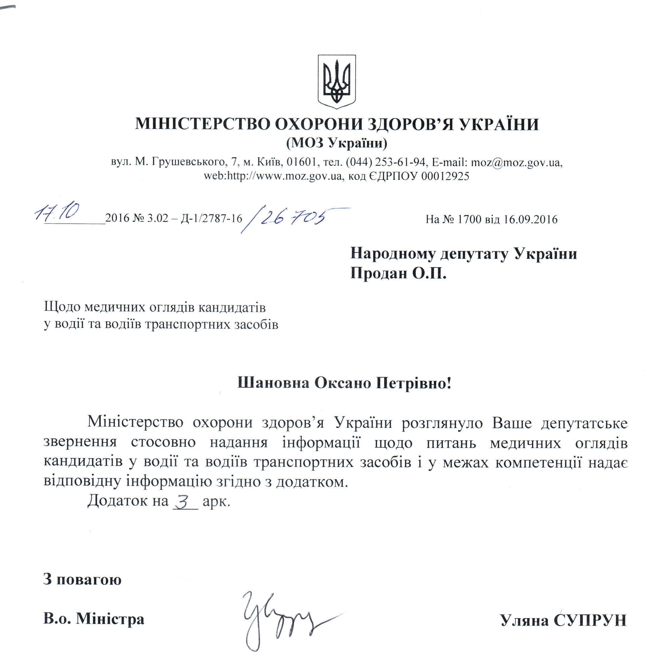 11Лис Коментування вимкнено Відповідь Міністерства охорони здоров’я України на депутатське звернення щодо медичних оглядів кандидатів у водії та водіїв транспортних засобів ДЕПУТАТСЬКЕ ЗВЕРНЕННЯ