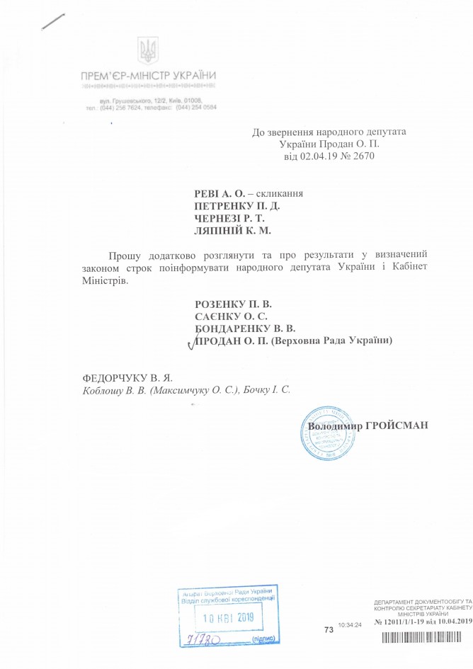 17Кві Коментування вимкнено Доручення Прем’єр-міністра України Гройсмана В.Б. до депутатського звернення щодо ініціювання та проведення інспекційних відвідувань ДЕПУТАТСЬКЕ ЗВЕРНЕННЯ