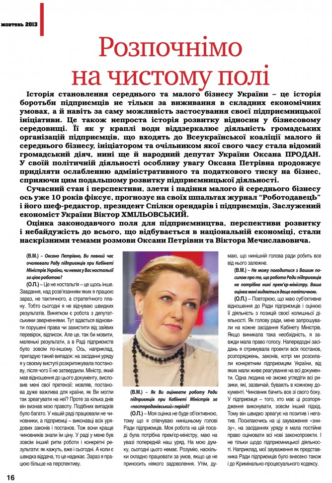 Інтерв’ю Оксани Продан журналу “Роботодавець”, жовтень 2013 р.
