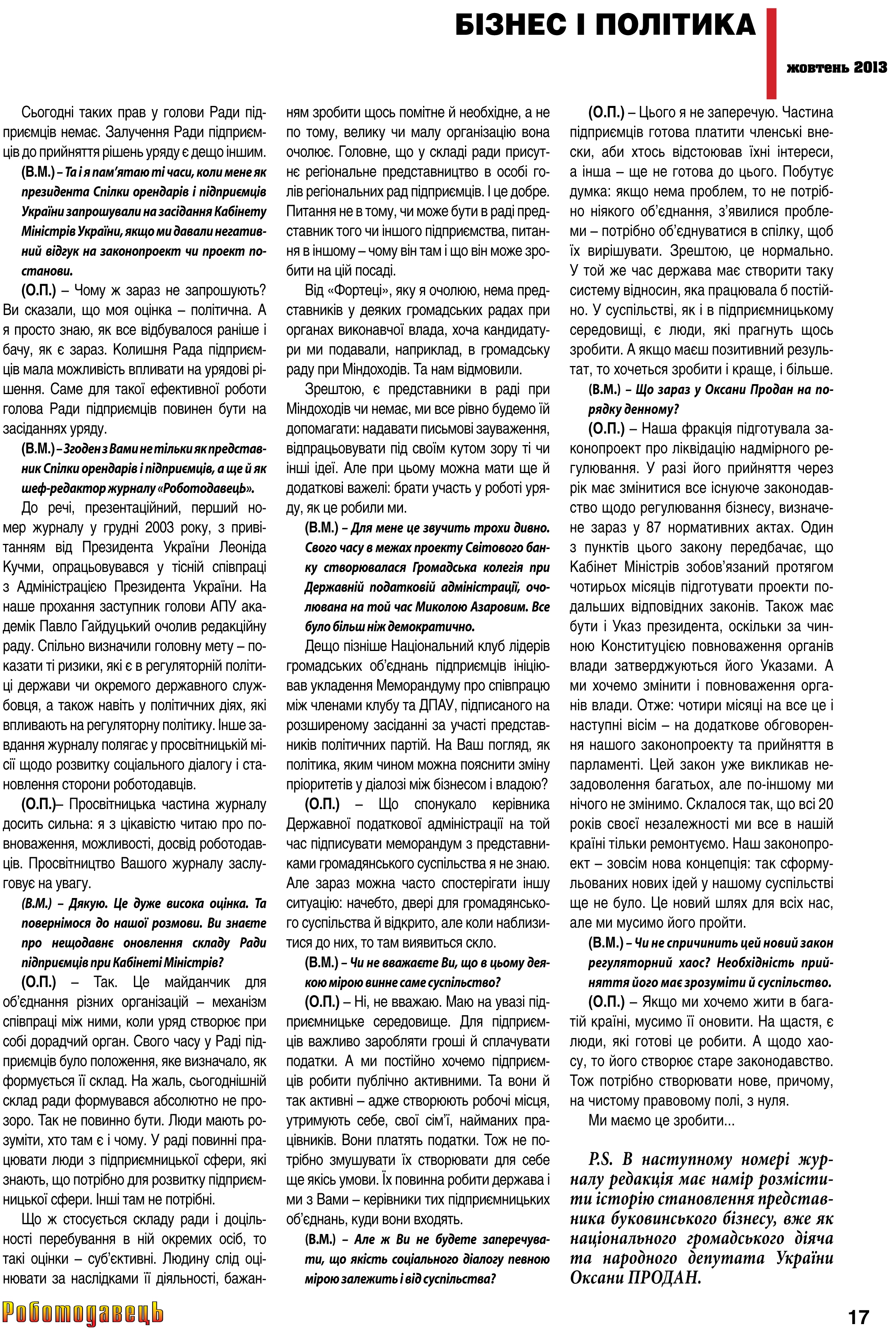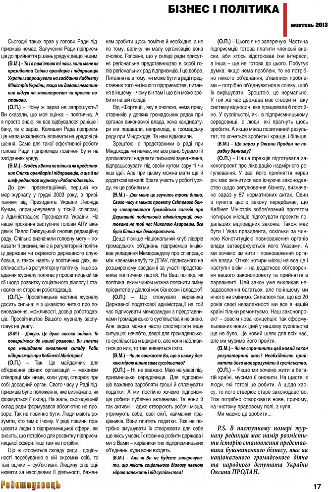 > Інтерв’ю Оксани Продан журналу “Роботодавець”, жовтень 2013 р.
