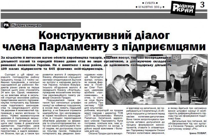 16Лис Коментування вимкнено Конструктивний діалог члена Парламенту з підприємцями, Гощанська районн газета “Рідний край”