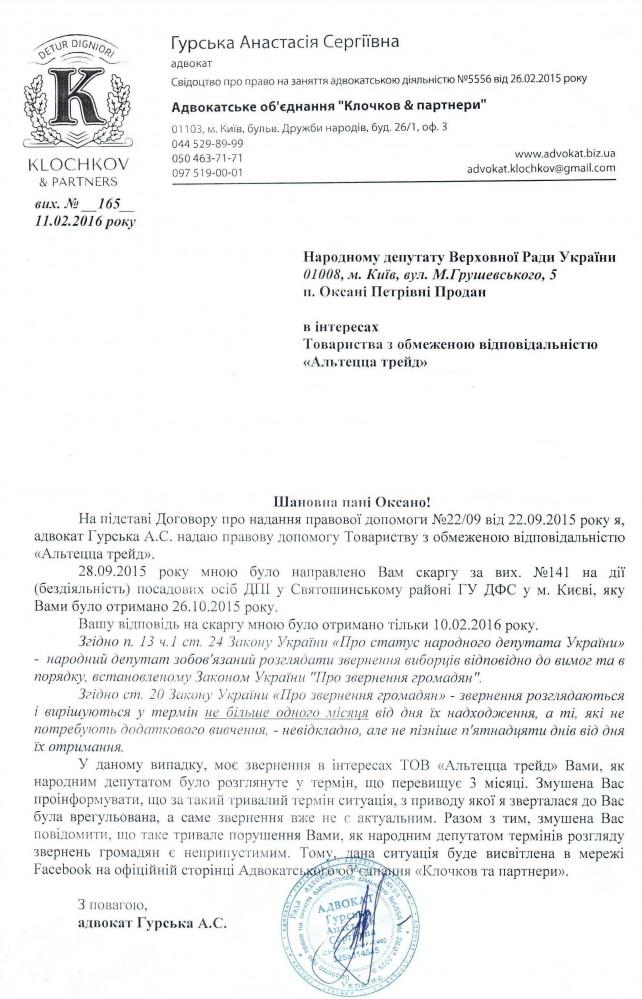 01Бер Коментування вимкнено Лист Адвоката Гурської Анастасії Сергіївни ВІДПОВІДЬ ГУ ДФС У М.КИЄВІ НА ДЕПУТАТСЬКЕ ЗВЕРНЕННЯ