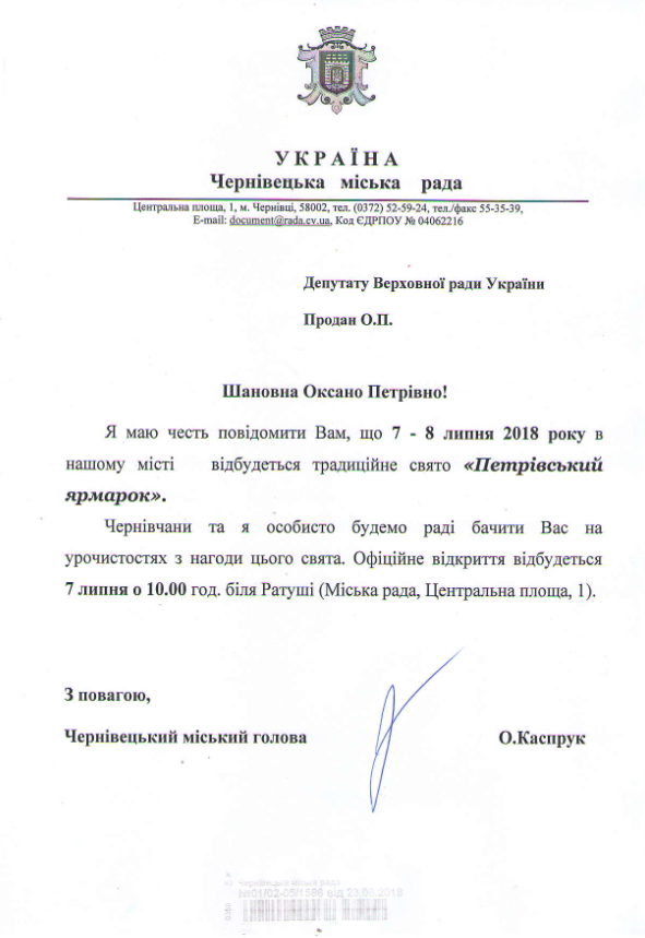 > Запрошення Чернівецької міської ради на відкриття Петрівського ярмарку