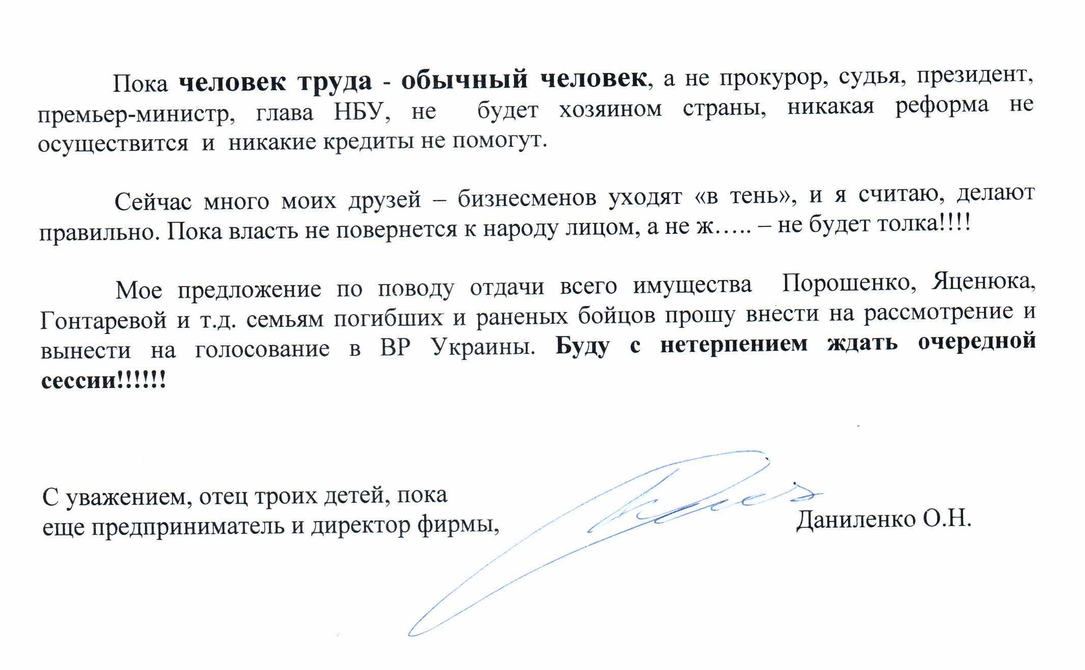 Головна > Верховна Рада України > Вхідна документація > Лист Даниленка О.М. щодо передачі у державну власність майна, що належить чиновникам
