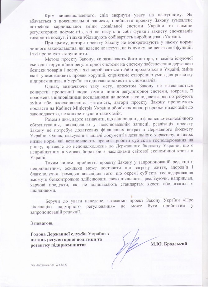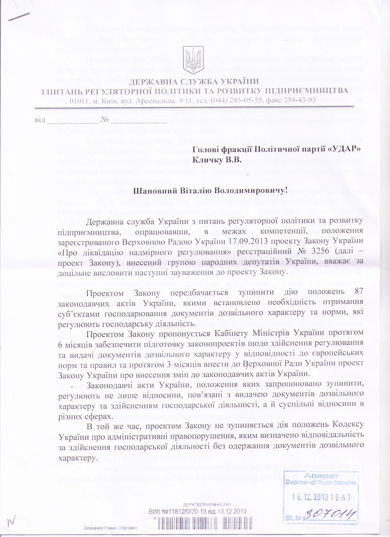 21Гру Коментування вимкнено Лист Державної служби України з питань регуляторної політики та розвитку підприємництва щодо законопроекту “Про ліквідацію надмірного регулювання”, реєстр. №3256
