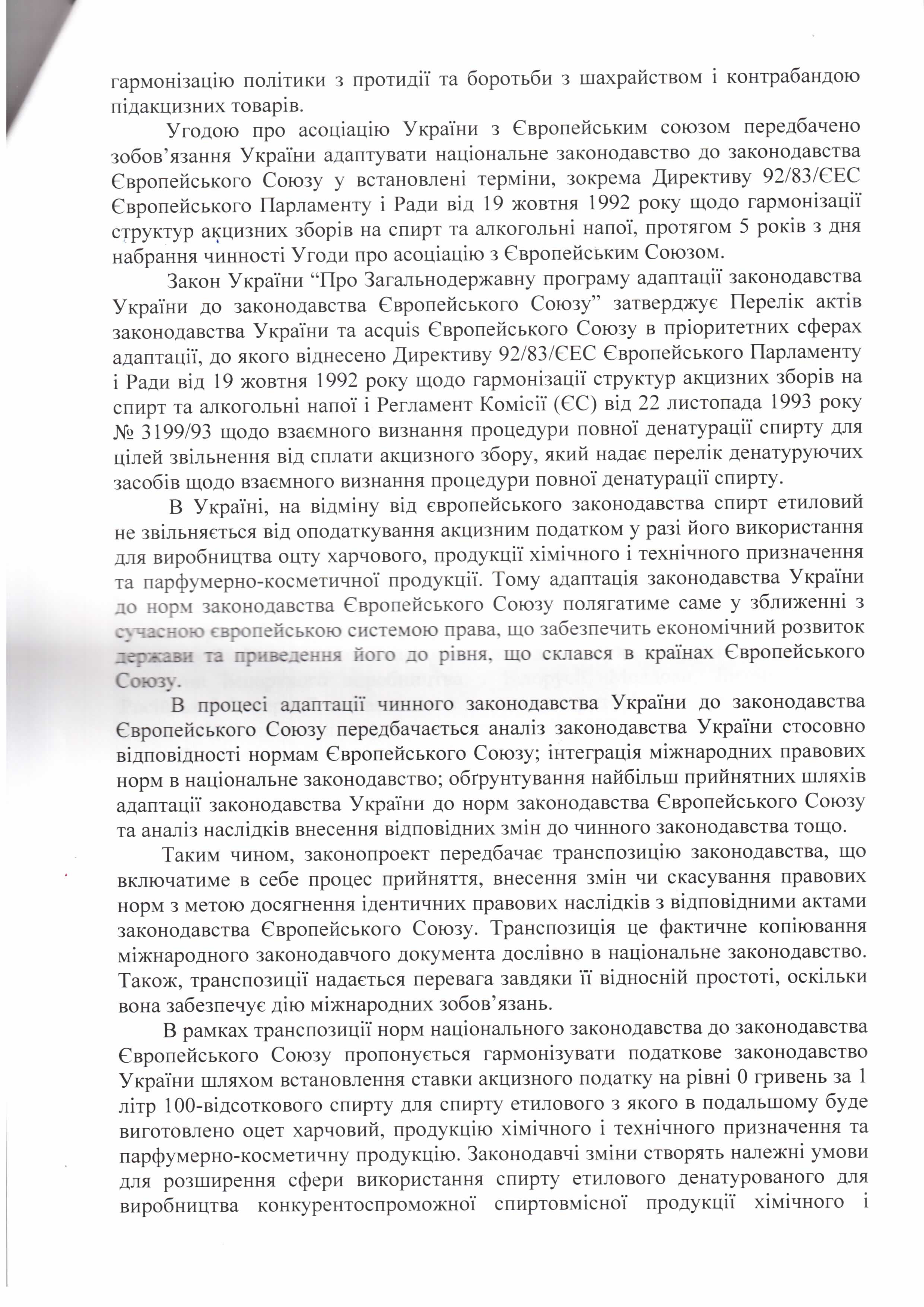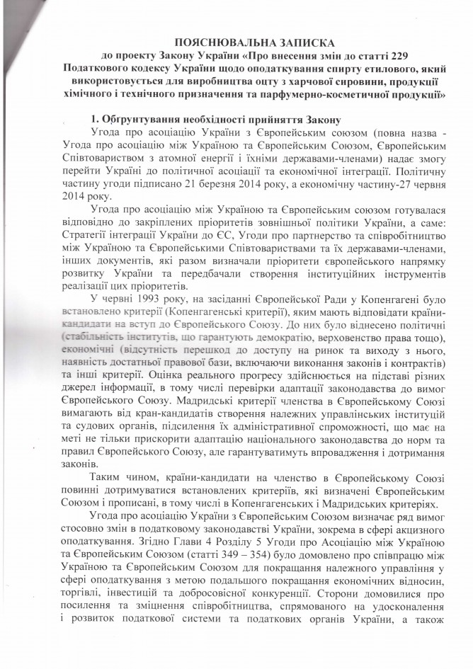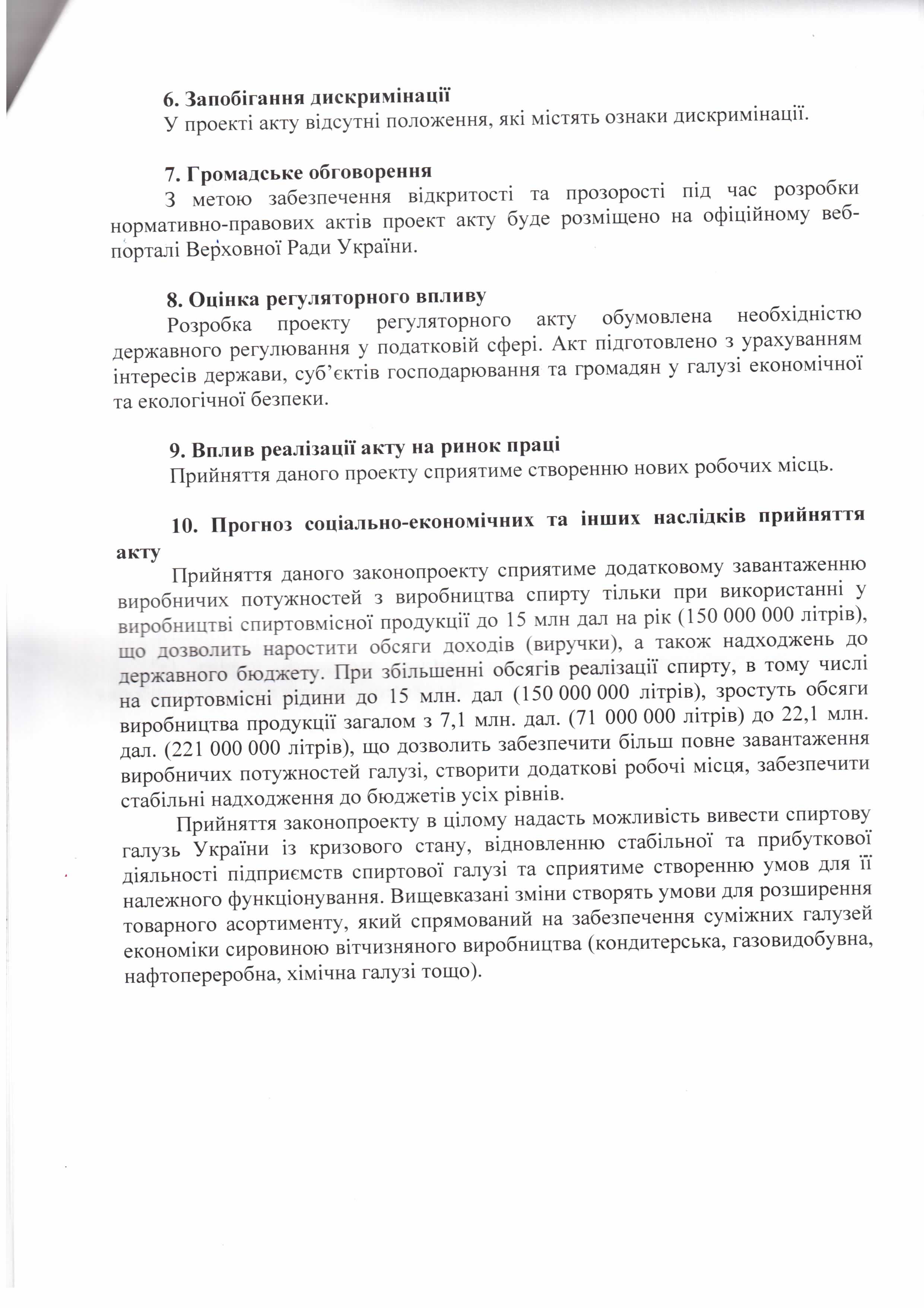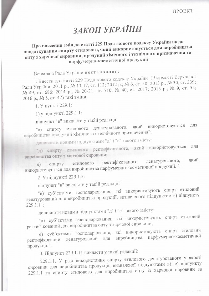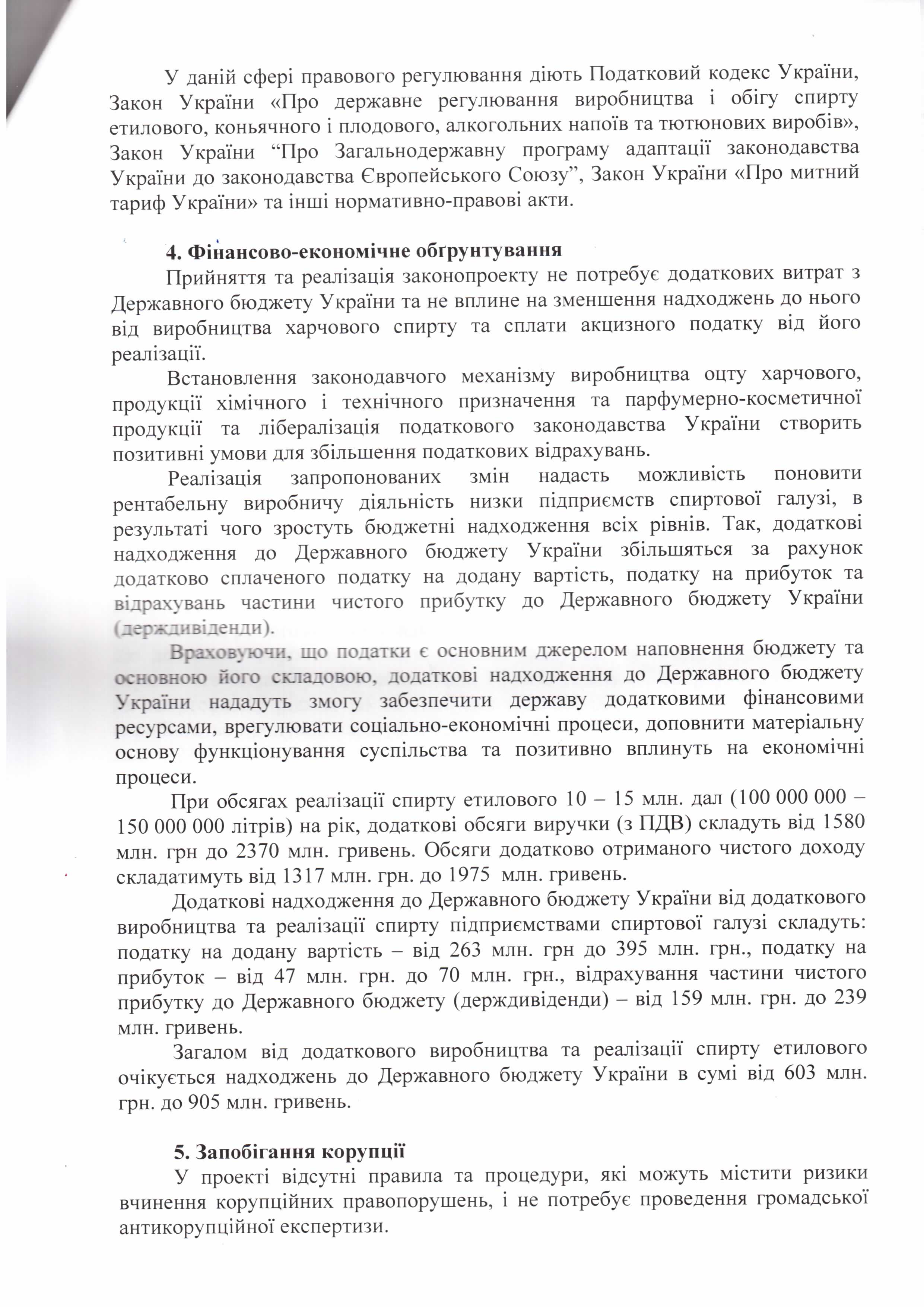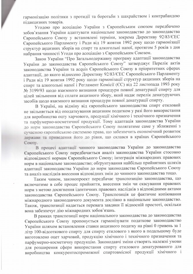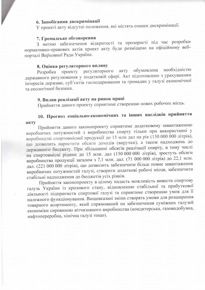 Лист ДП “Укрспирт” щодо законопроекту “Про внесення змін до деяких законів України щодо підприємств спиртової галузі (в частині встановлення мораторію на звернення стягнення на активи підприємства)”, розроблений підприємством)