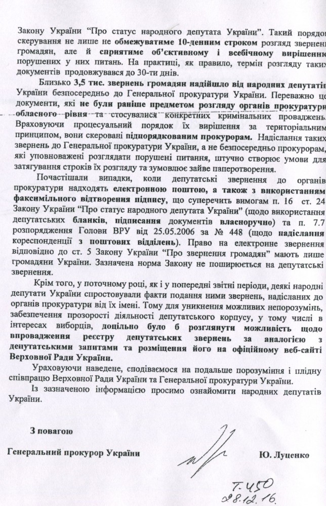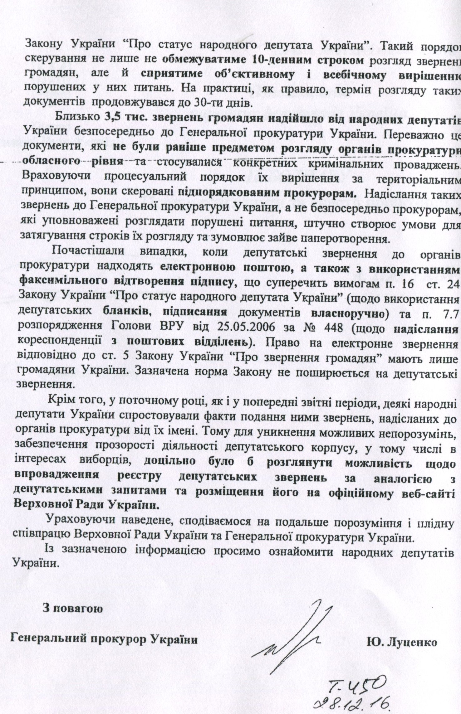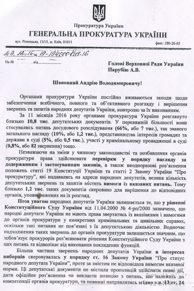 12Січ Коментування вимкнено Лист Генеральної прокуратури України щодо забезпечення всебічного та об’єктивного розгляду звернень та запитів народних депутатів України
