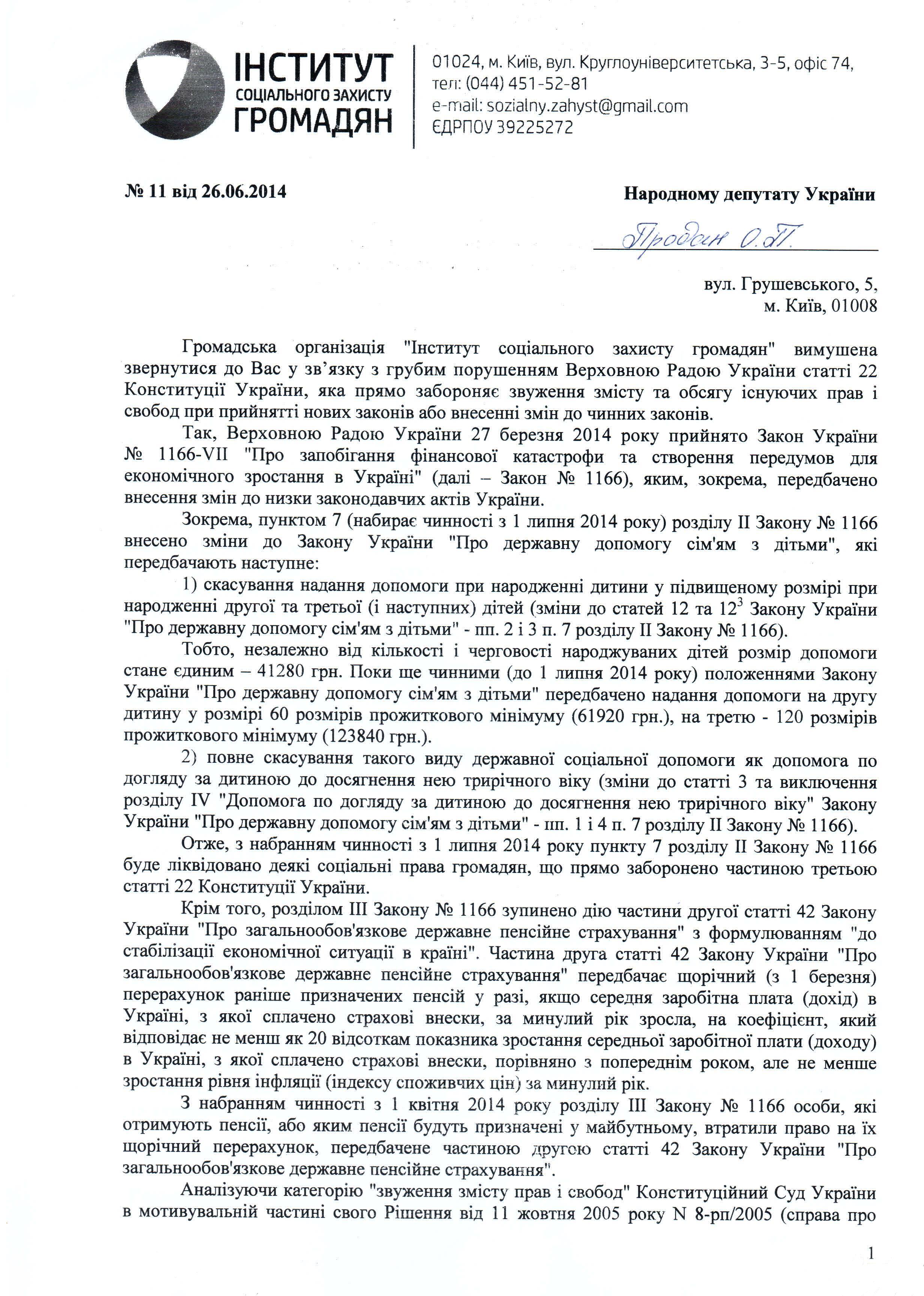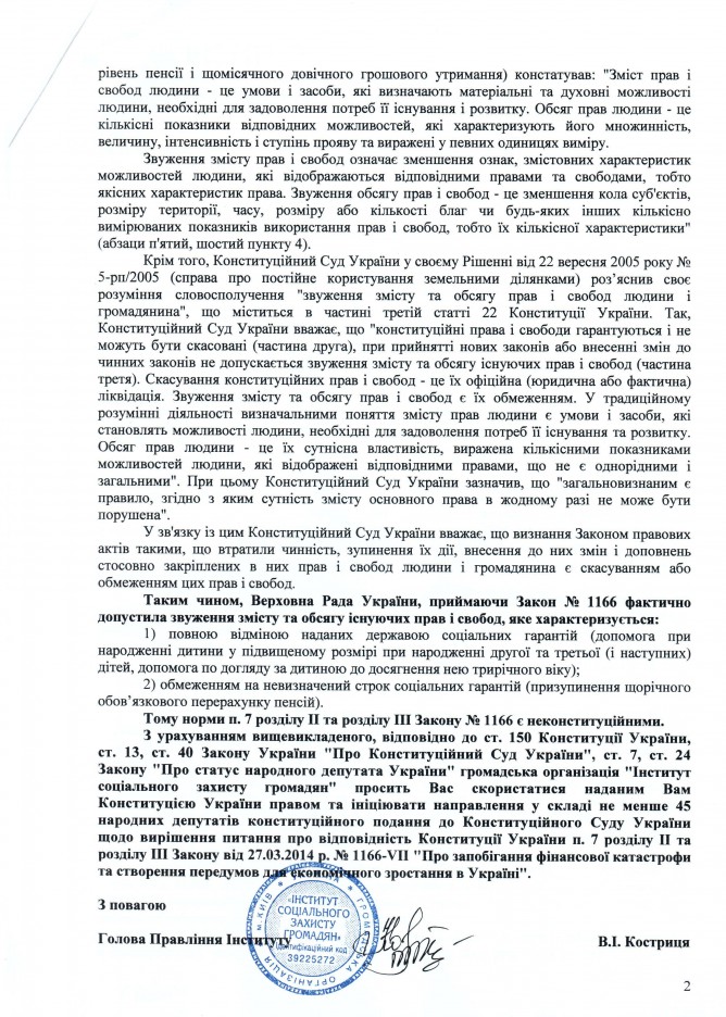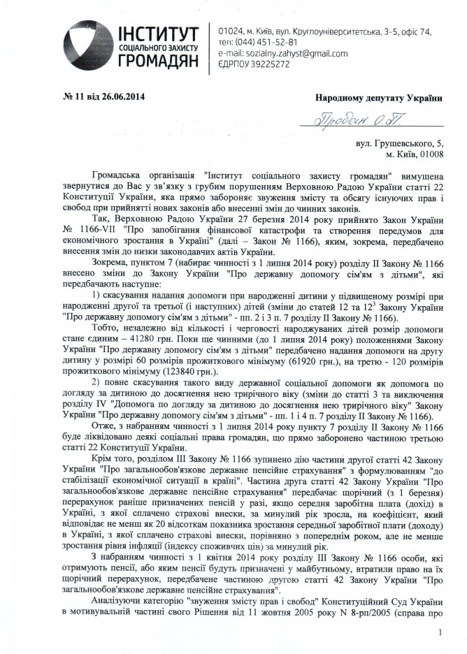 14Лип Коментування вимкнено Лист ГО “Інститут соціального захисту громадян” щодо недопущення звуження існуючих прав громадян України