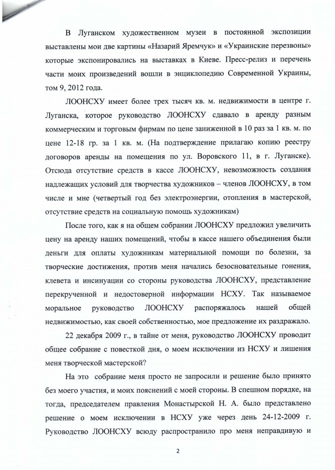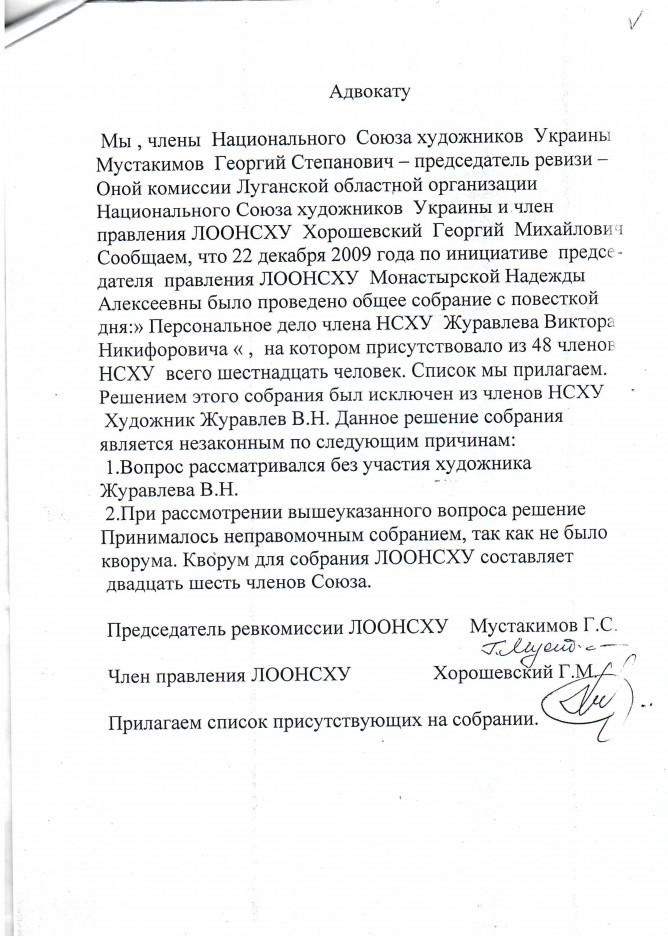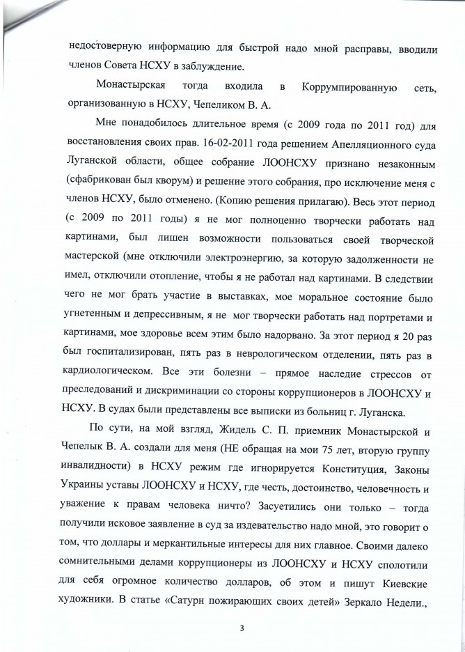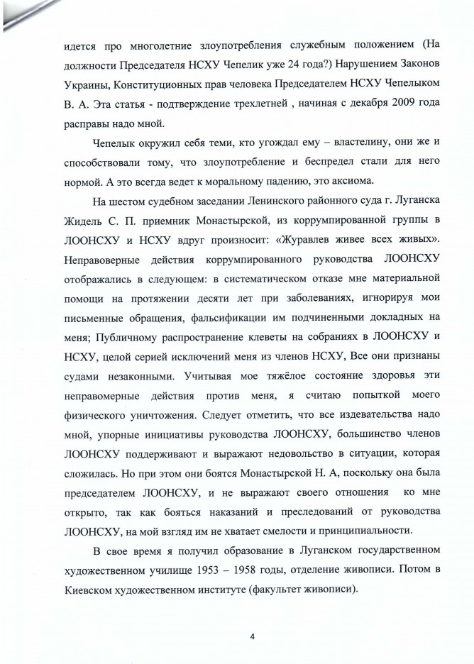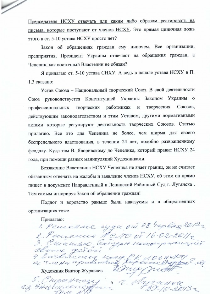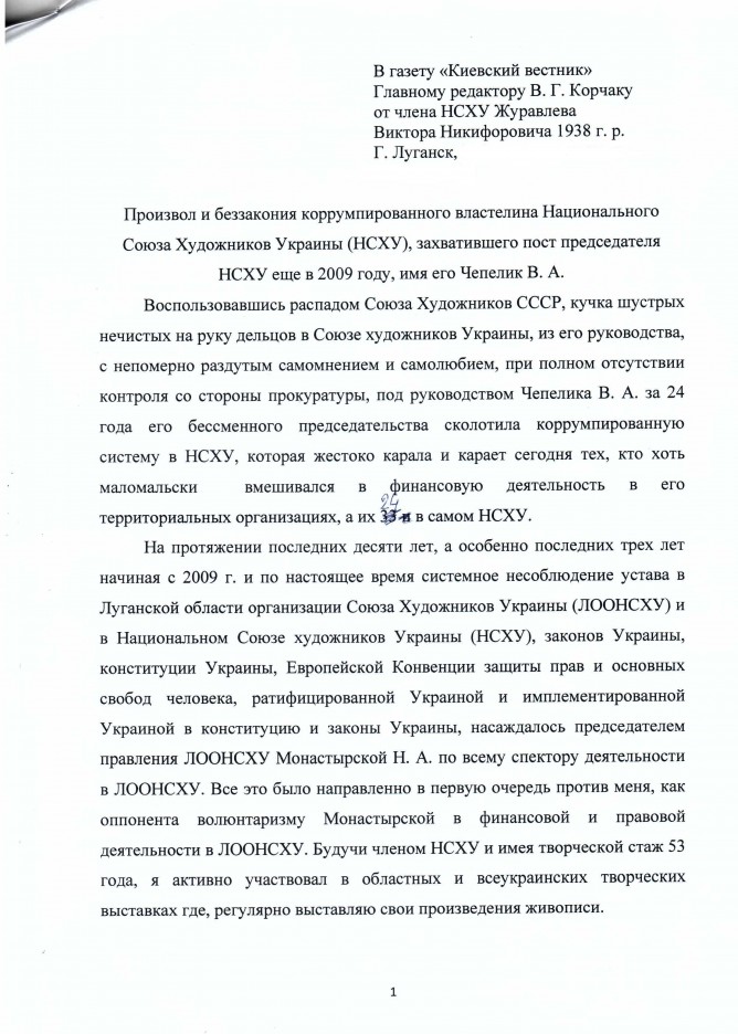 13Лис Коментування вимкнено Лист художника Журавльова В.Н. та матеріал для публікації щодо незаконної діяльності керівників Національної Спілки Художників України