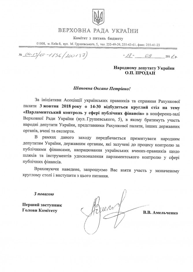 01Жов Коментування вимкнено Лист Комітету ВРУ з питань бюджету про проведення круглого столу на тему: “Парламентський контроль у сферi публiчних фiнансiв”, 3 жовтня 2018 року