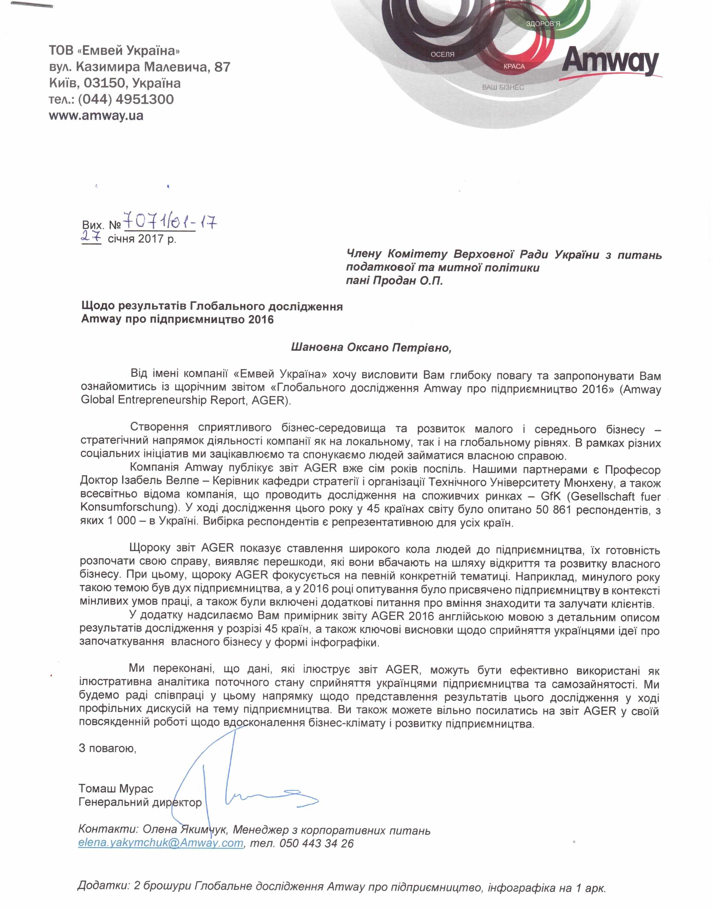 07Бер Коментування вимкнено Лист компанії “Емвей Україна” щодо результатів щорічного звіту Глобального дослідження Amway про підприємництво 2016