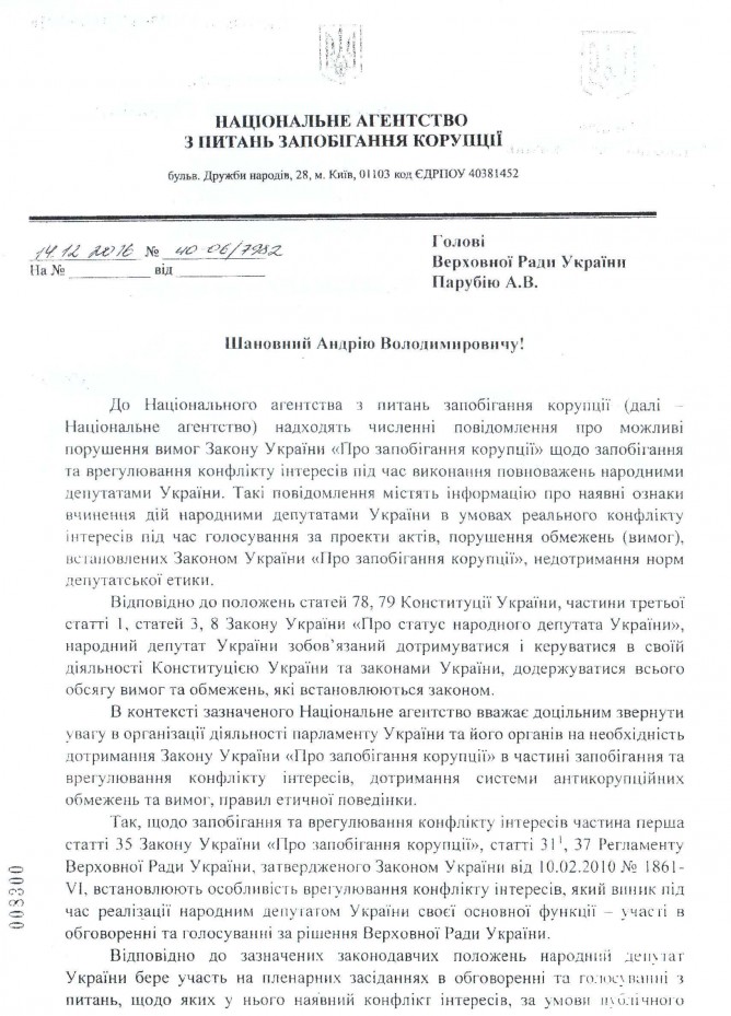 19Січ Коментування вимкнено Лист Національного агентства з питань запобігання корупції щодо запобігання виникненню та врегулювання конфлікту інтересів під час виконання повноважень народними депутатами України