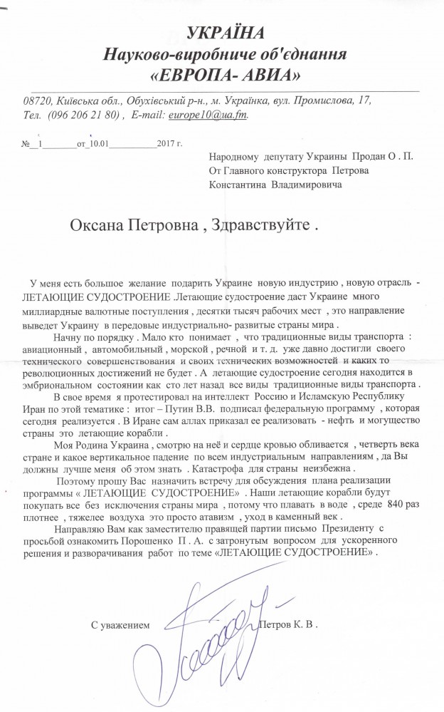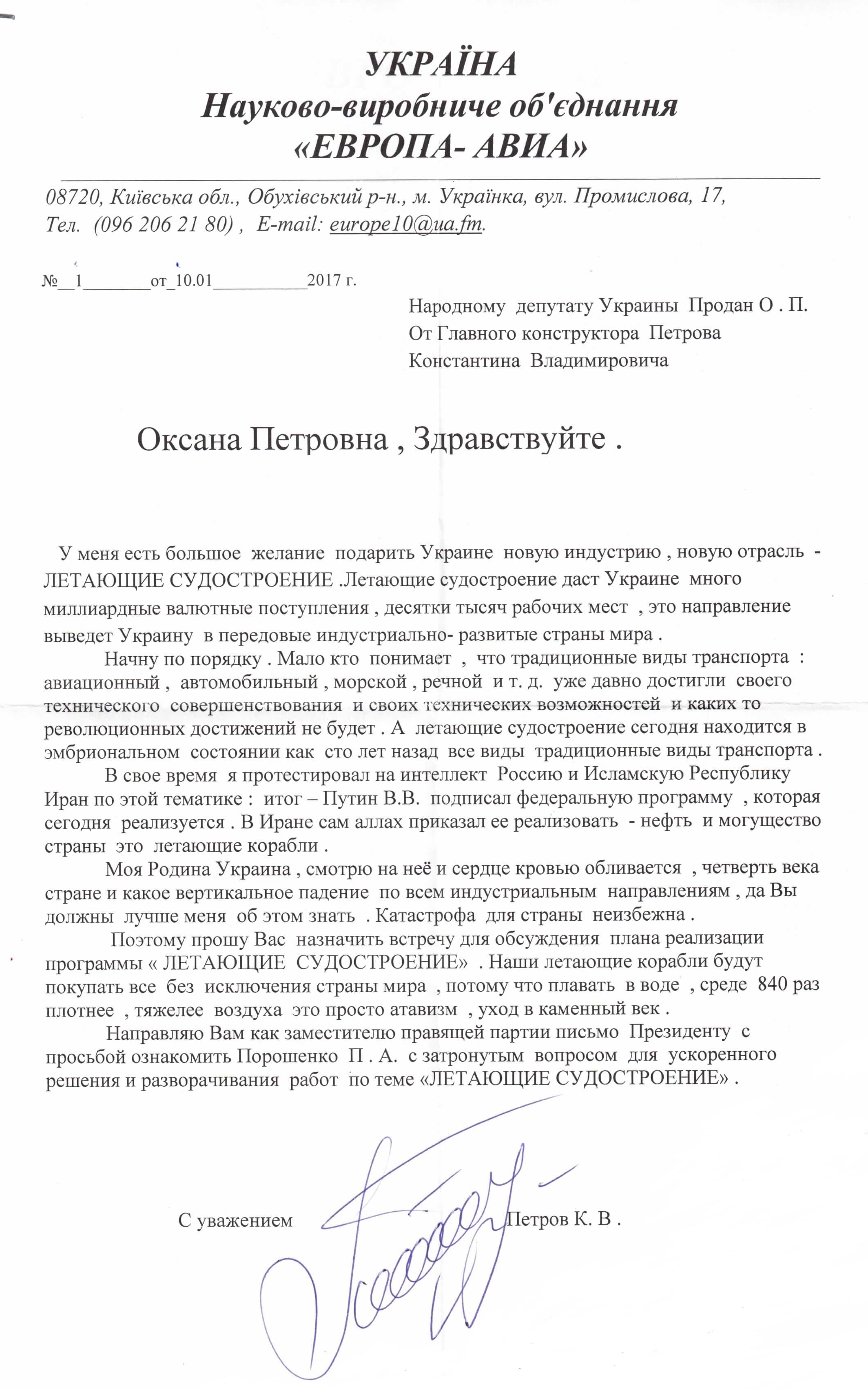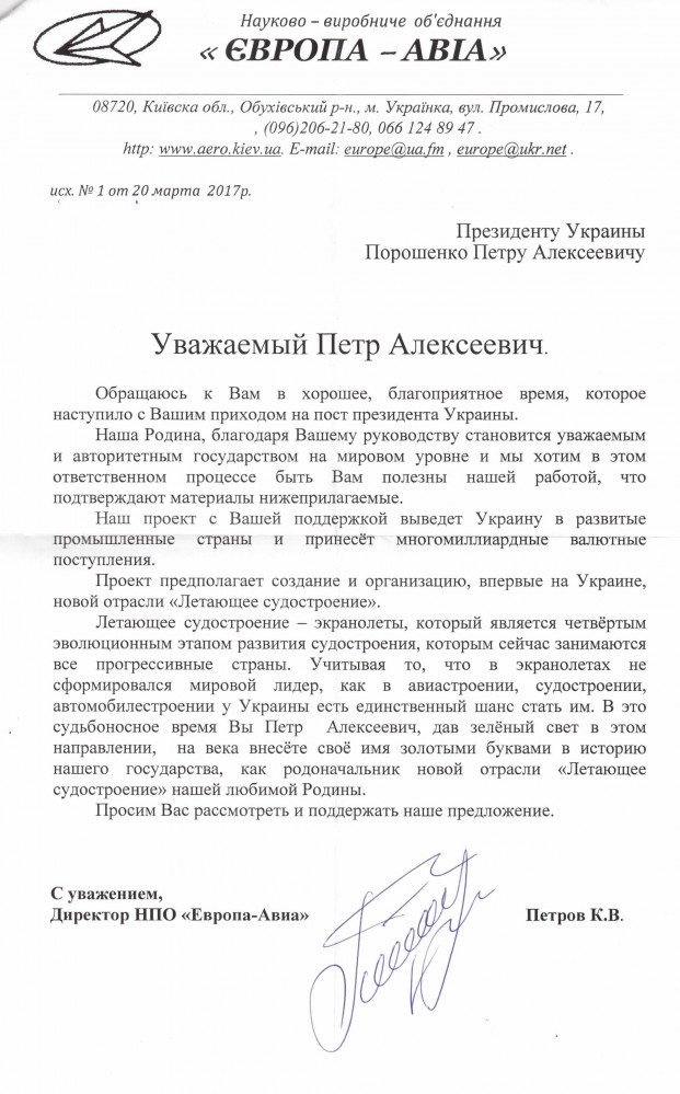 04Кві Коментування вимкнено Лист НВО “ЄВРОПА – АВІА” щодо розвитку в Україні галузі літаючого суднобудування