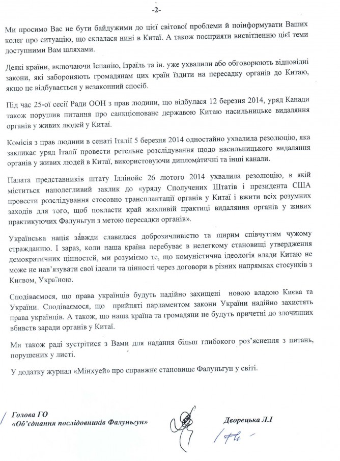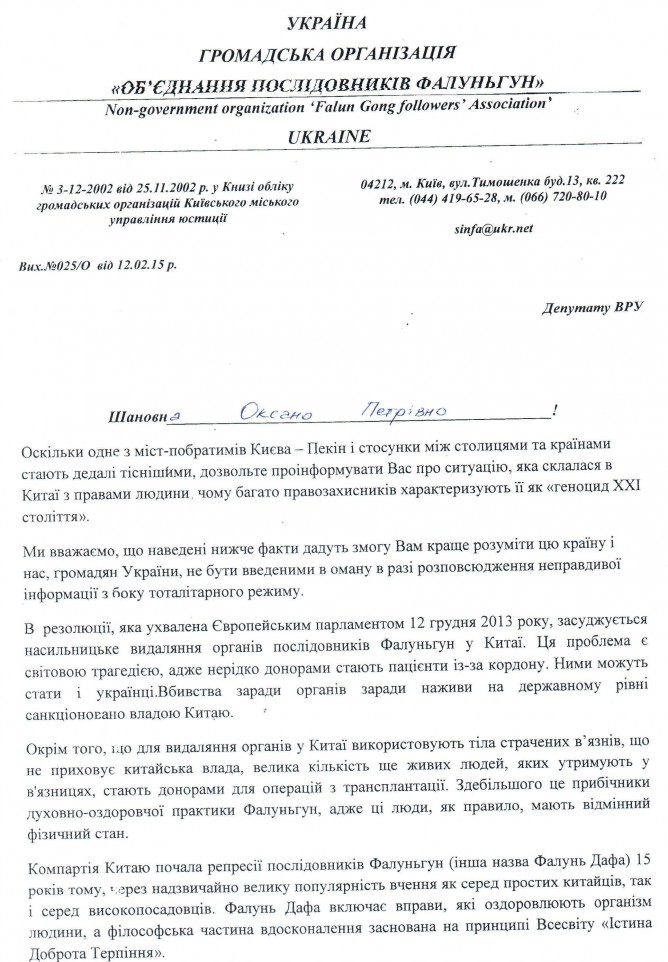 11Бер Коментування вимкнено Лист Об’єднання послідовників Фалуньгун щодо репресій послідовників Фалуньгун у Китаї