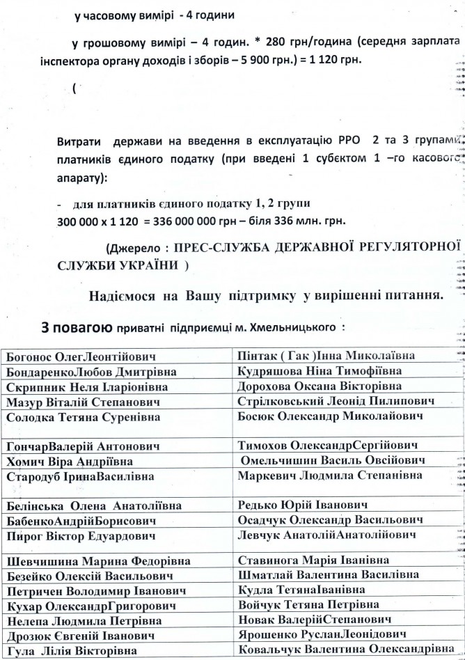 05Тра Коментування вимкнено Лист підприємців м. Хмельницький щодо недоцільності введення РРО для платників єдиного податку