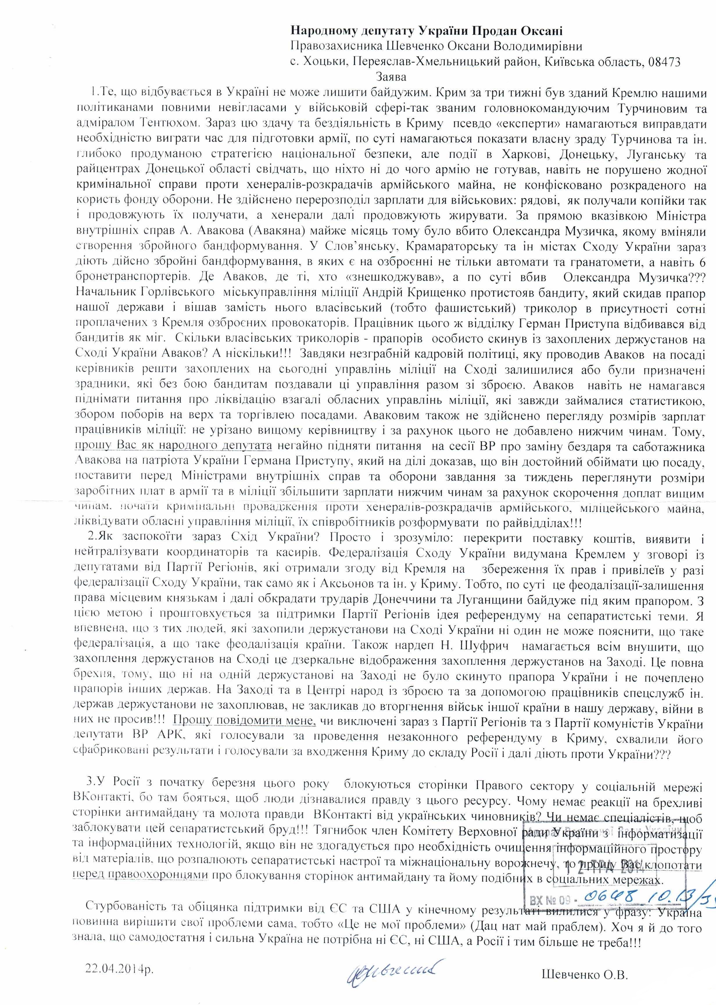 26Тра Коментування вимкнено Лист правозахисника Шевченко О.В. щодо необхідності реформування МВС України та ситуації на сході України