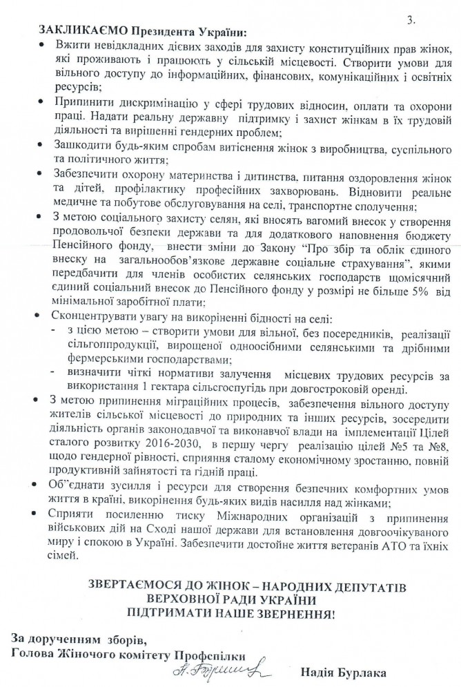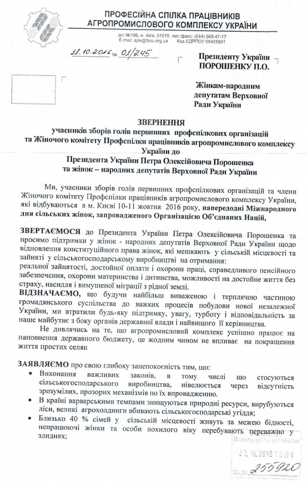 27Січ Коментування вимкнено Лист Професійної спілки працівників агропромислового комплексу України щодо захисту прав жінок, які працюють у сільській місцевості