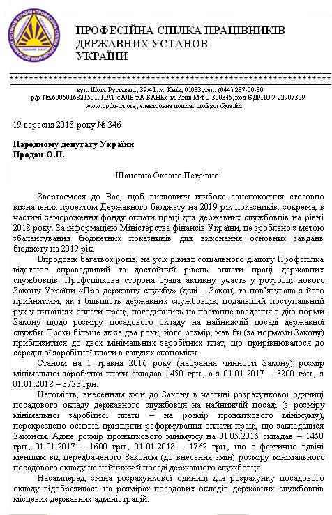 10Жов Коментування вимкнено Лист Професійної спілки працівників державних установ України щодо недопущення замороження фонду оплати праці для державних службовців
