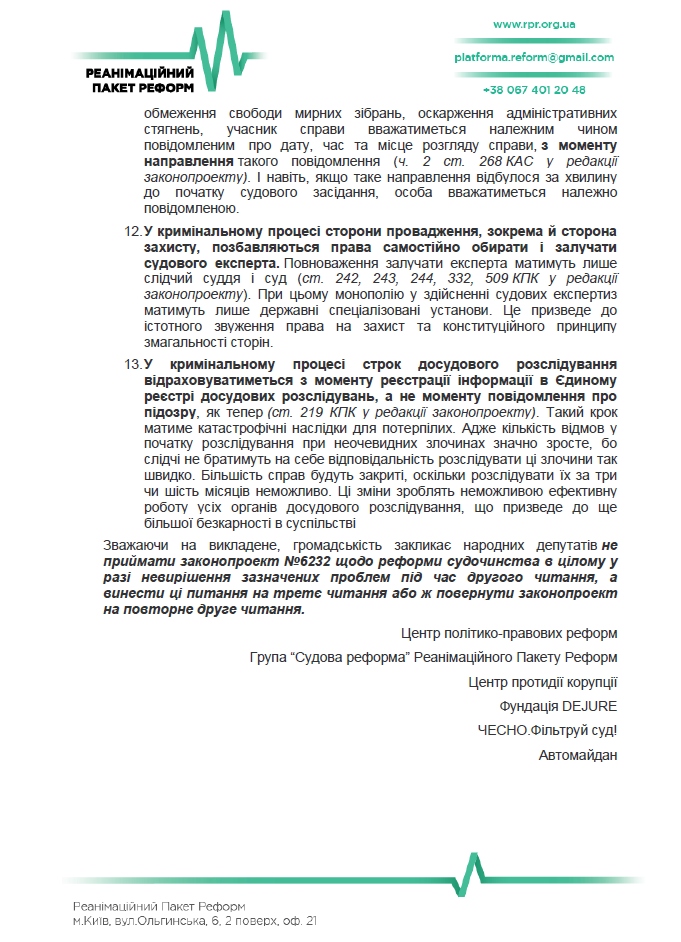 1) Ризики в зп 6232, які ми закликаємо усунути перед голосуванням.