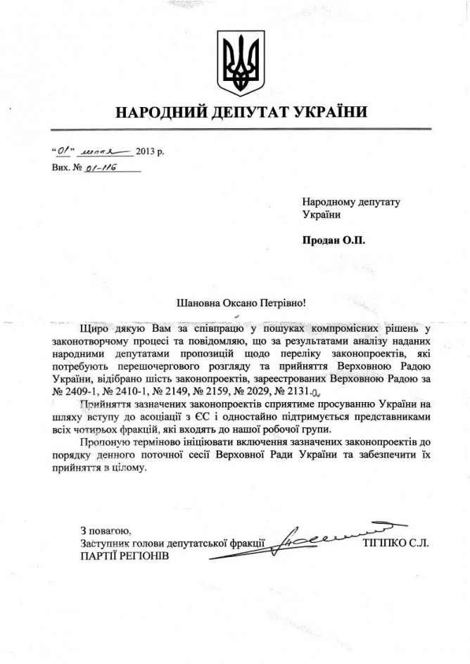 08Лип Коментування вимкнено Лист С.Тігіпка з подякую за роботу над законопроектами, які сприятимуть підписанню Угоди з ЄС