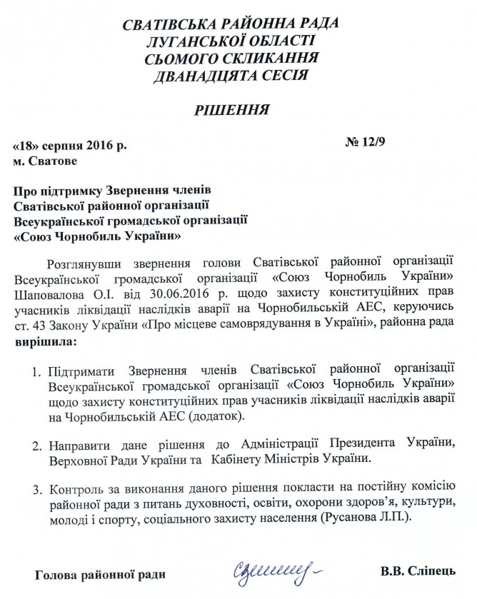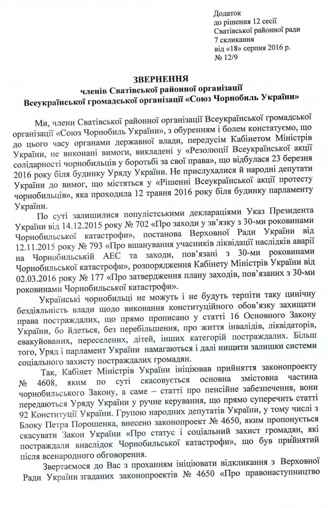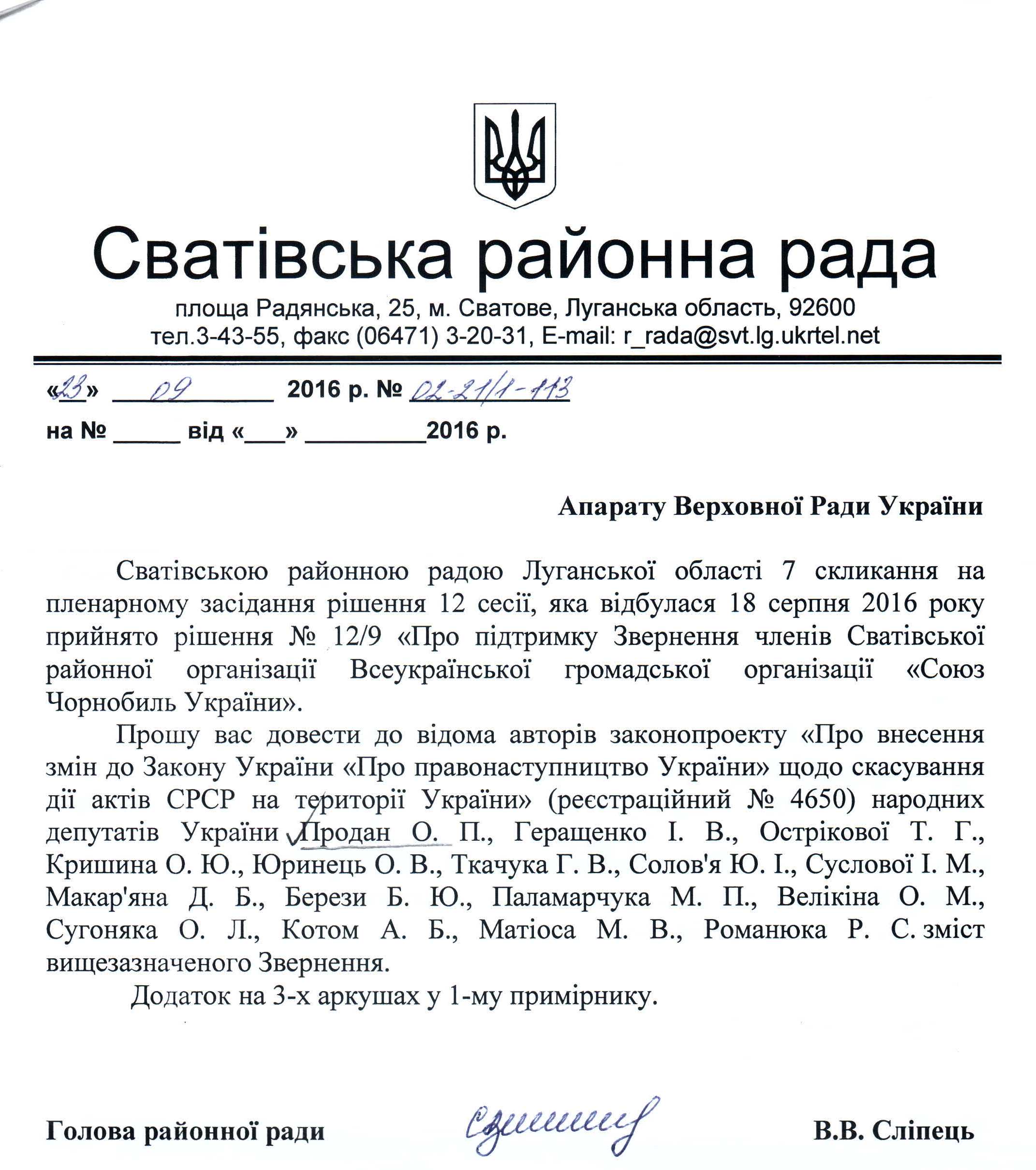 09Лис Коментування вимкнено Лист Сватівської районної ради щодо законопроектів у сфері соціального захисту чорнобильців ВІДПОВІДЬ НАРОДНОГО ДЕПУТАТА УКРАЇНИ НА ЗВЕРНЕННЯ