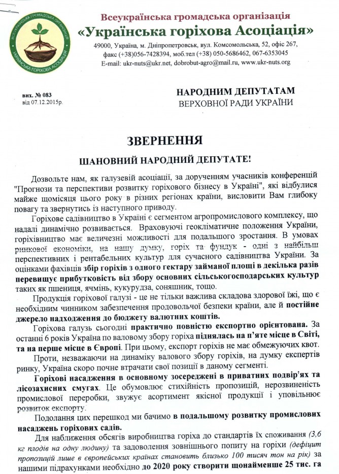 12Січ Коментування вимкнено Лист Української горіхової Асоціації щодо підтримки горіхового садівництва