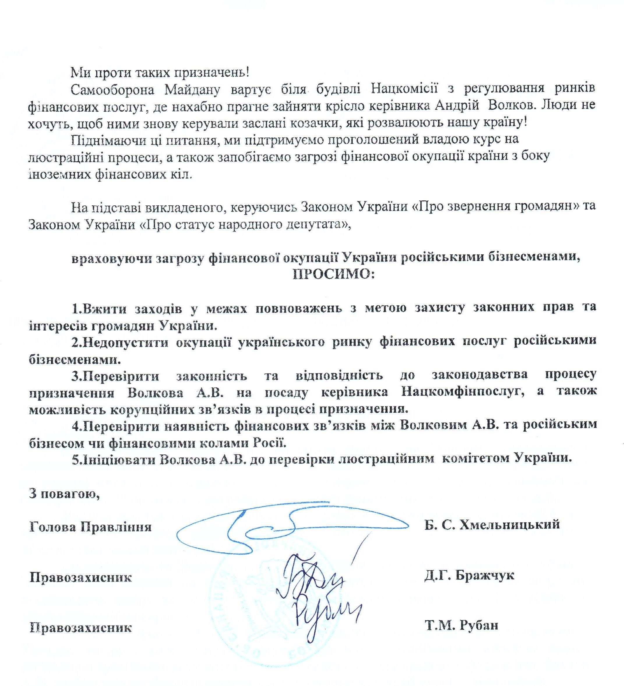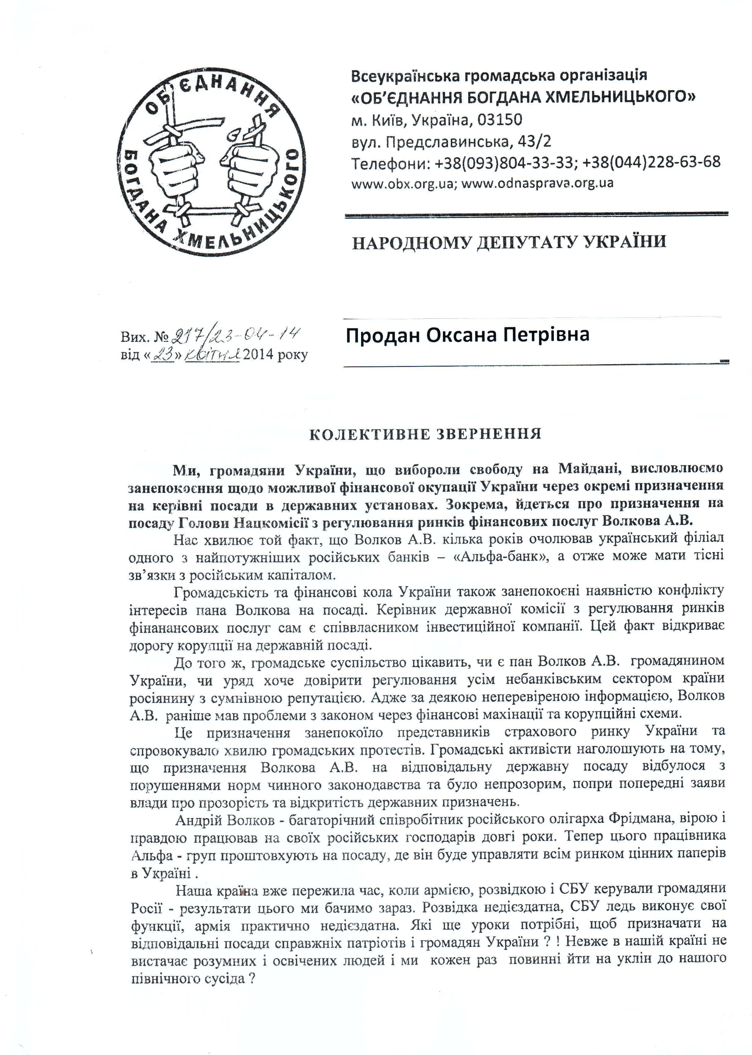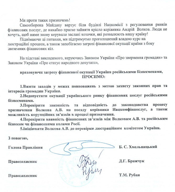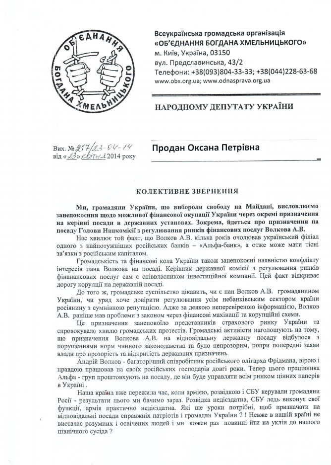15Тра Коментування вимкнено Лист ВГО “Обєднання Богдана Хмельницького” щодо кандидатури на Голову Національної комісії, що здійснює державне регулювання у сфері ринків фінансових послуг
