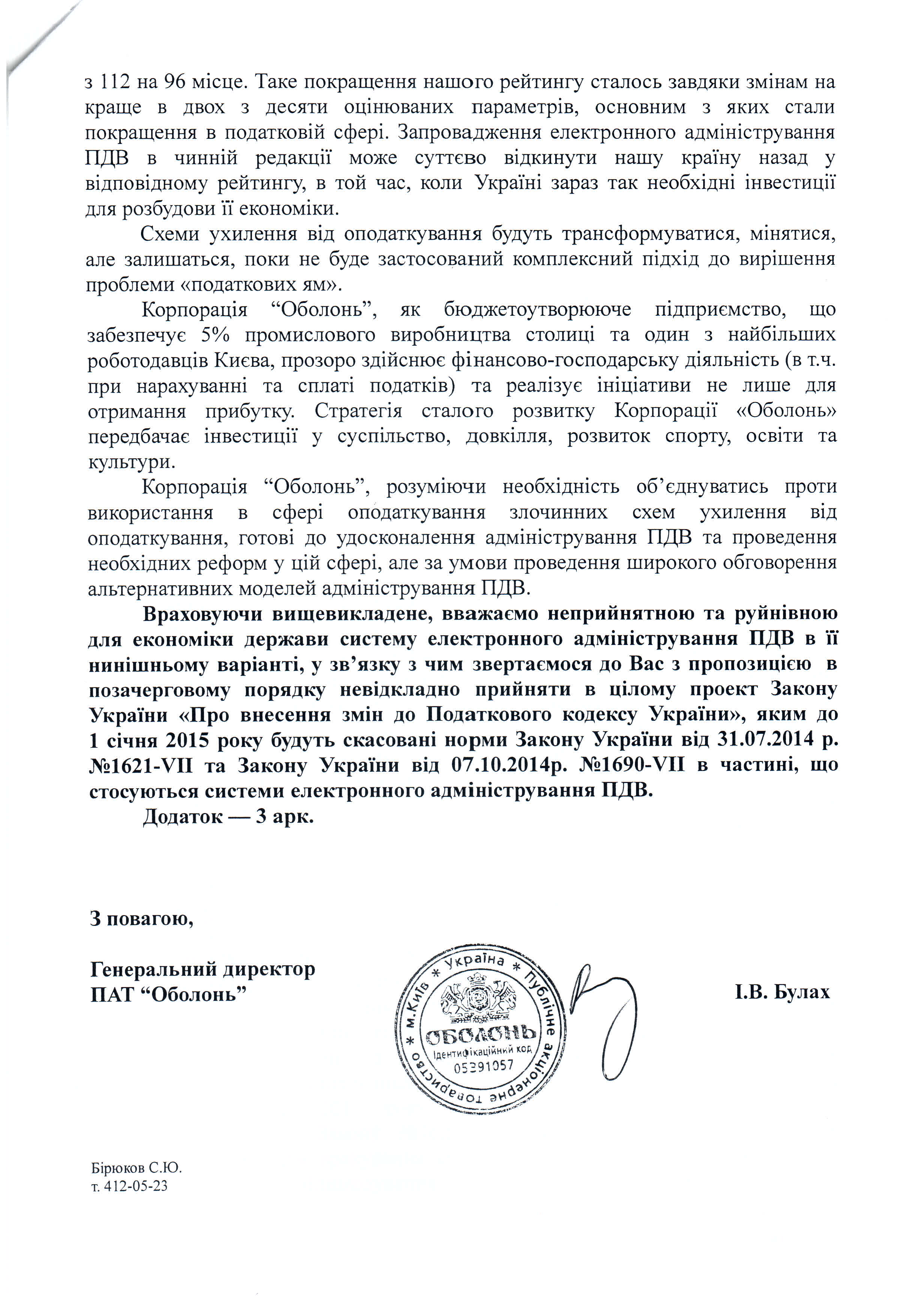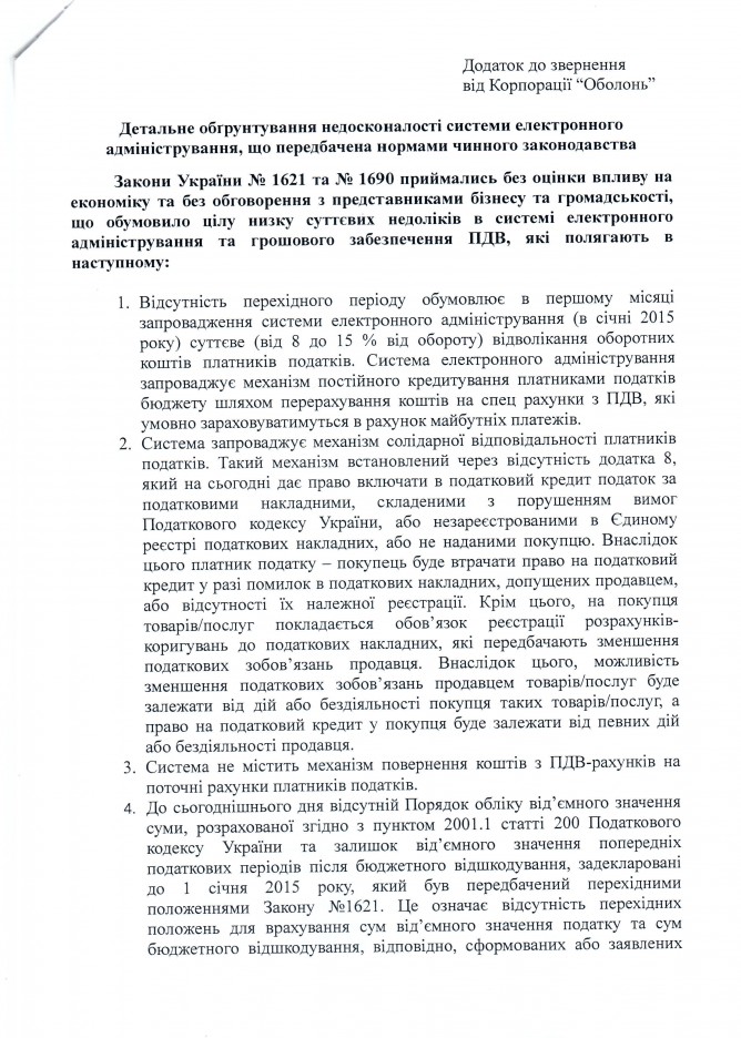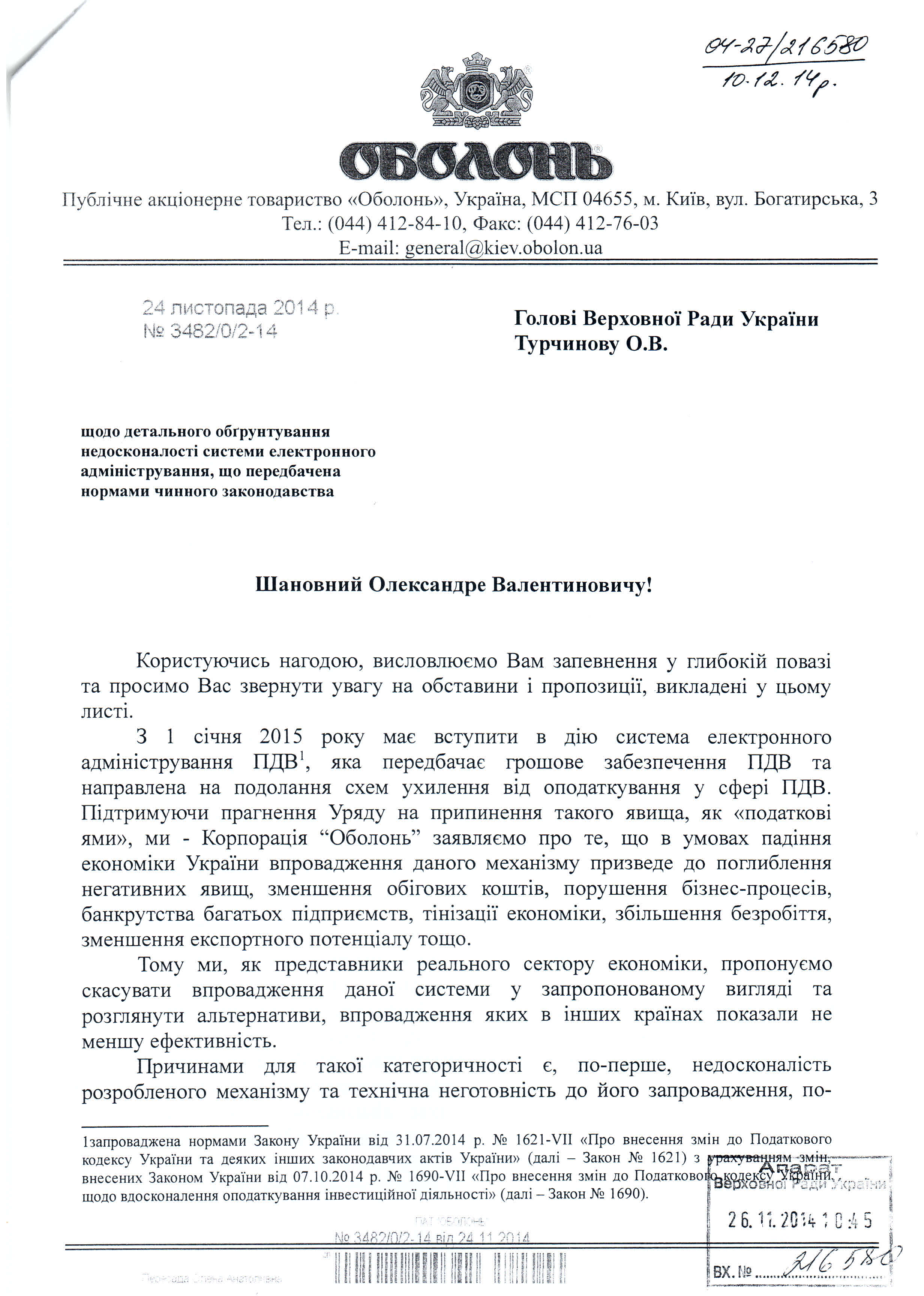 29Січ Коментування вимкнено Лист Корпорації “Оболонь” щодо недосконалості системи електронного адміністрування