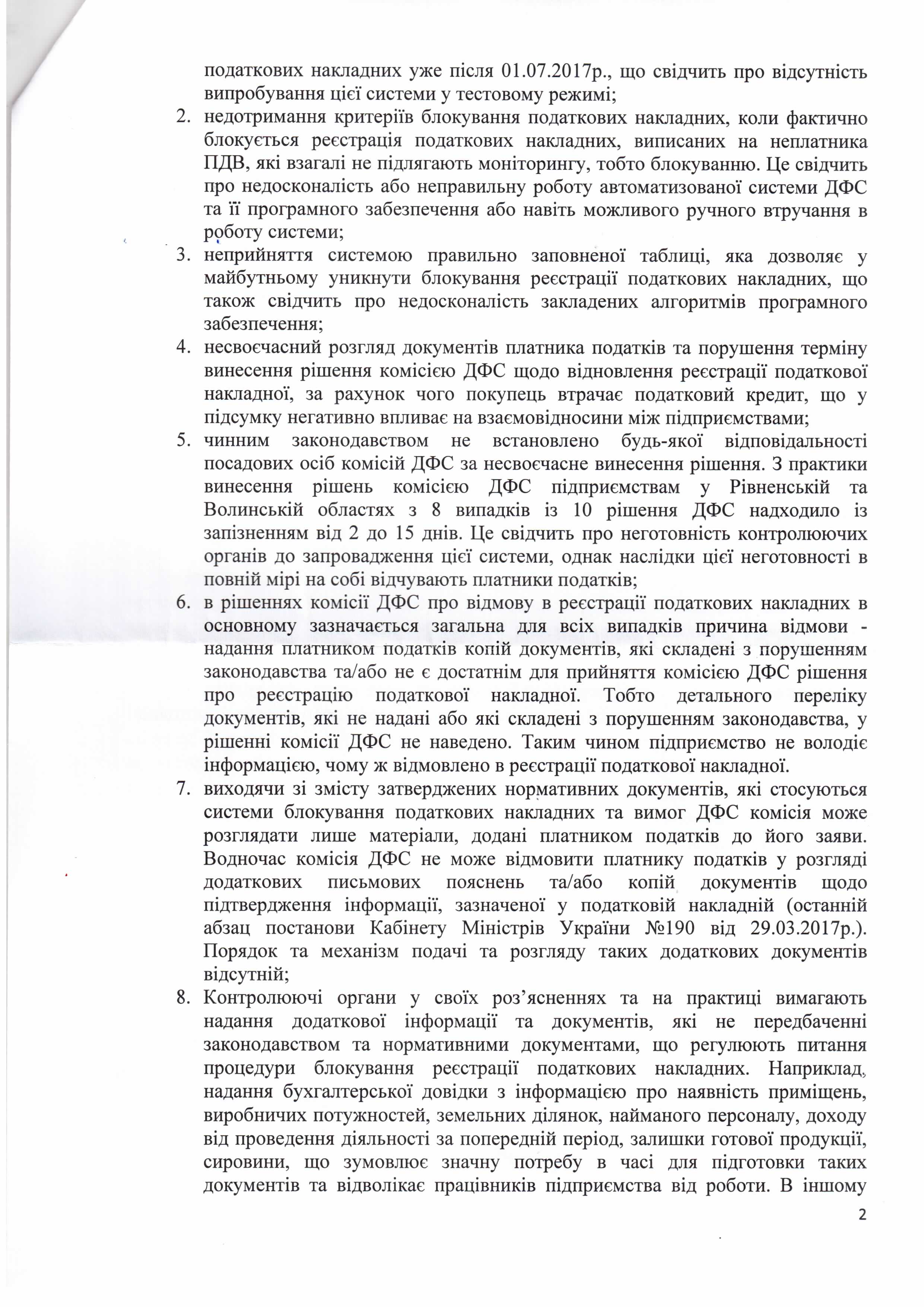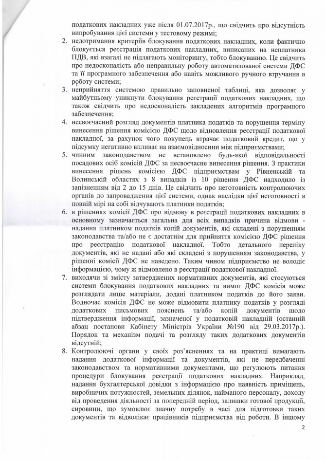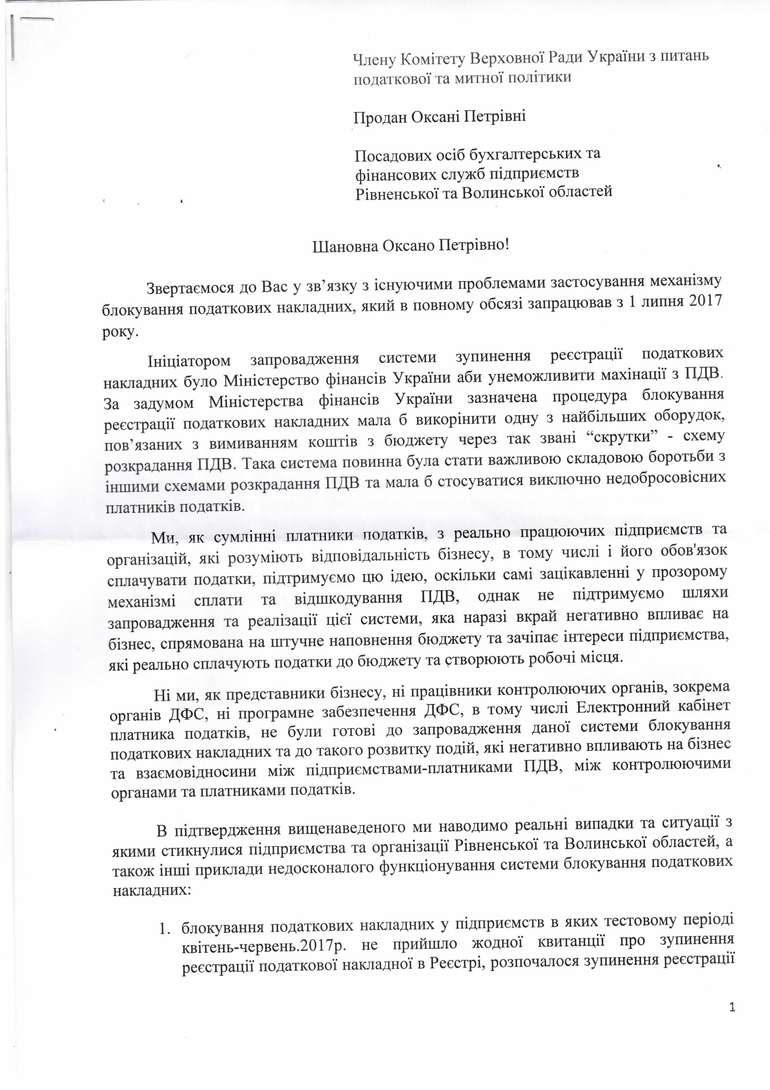 04Вер Коментування вимкнено Лист від посадових осіб бухгалтерських та фінансових служб підприємств Рівненської та Волнинської областей щодо питання блокування податкових накладних