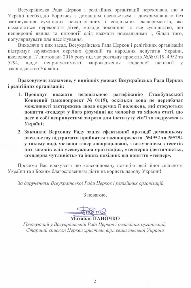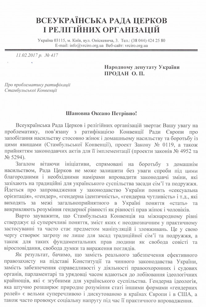 11Кві Коментування вимкнено Лист Всеукраїнської ради церков і релігійних організацій щодо проблематики ратифікації Стамбульської конвенції