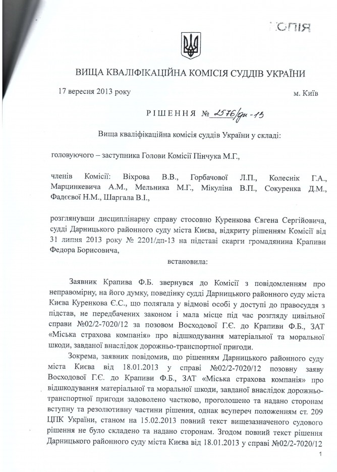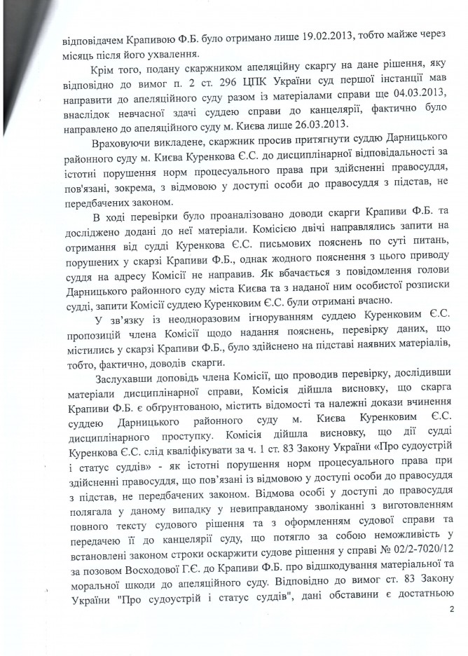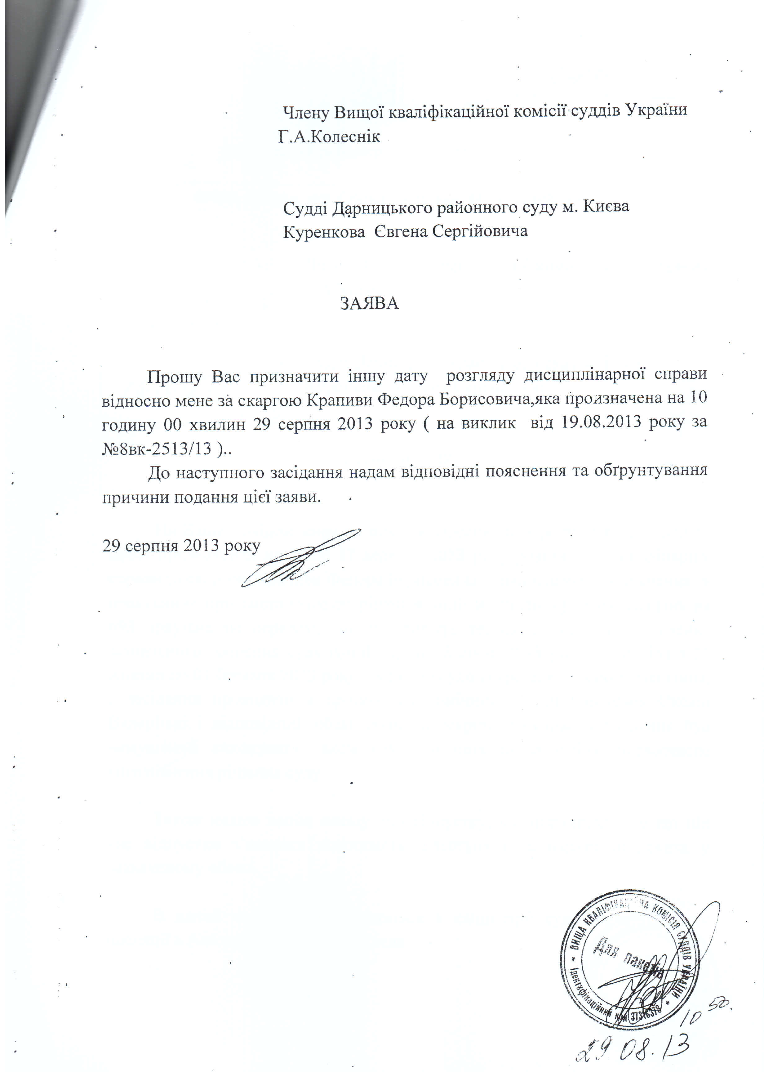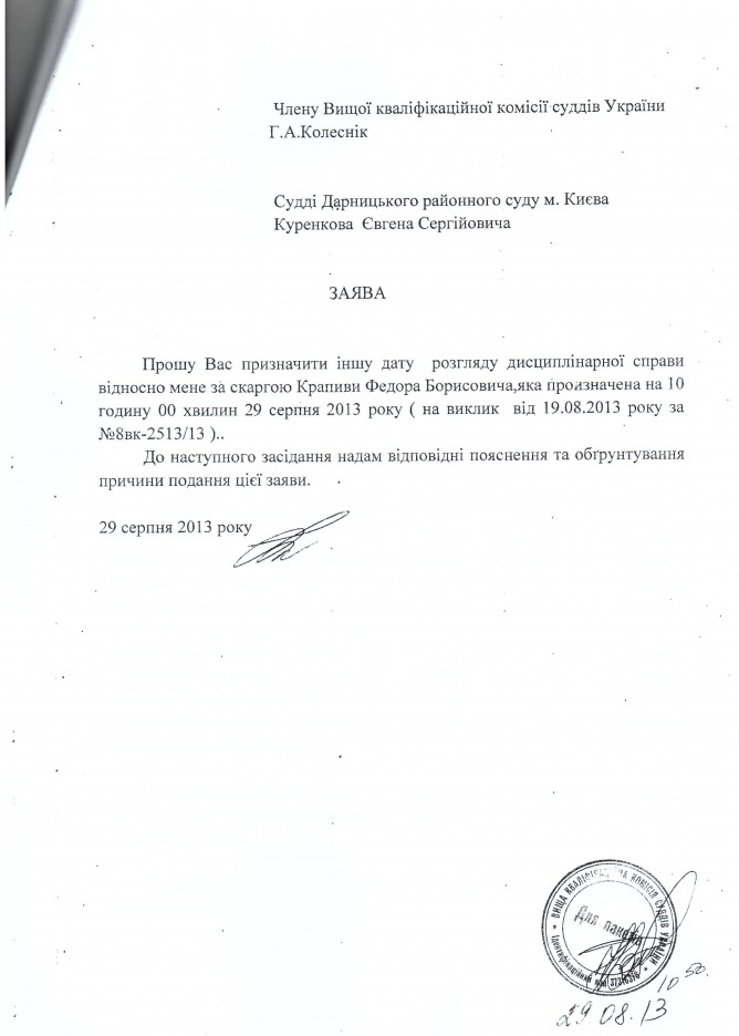 21Лис Коментування вимкнено Пояснення судді Дарницького районного суду м. Києва на пленарне засідання 05.11.2013 р., на якому розглядалося питання про його звільнення
