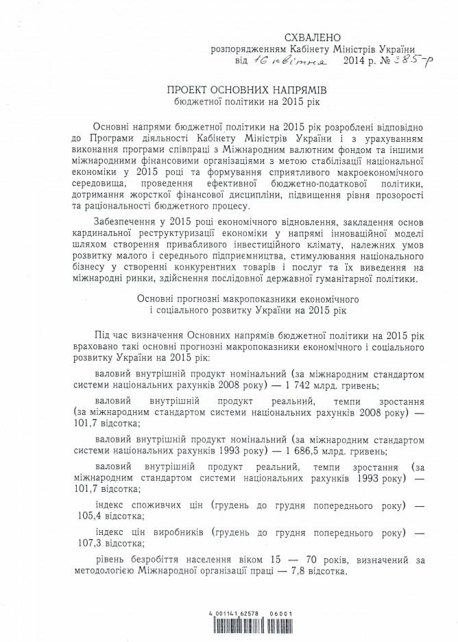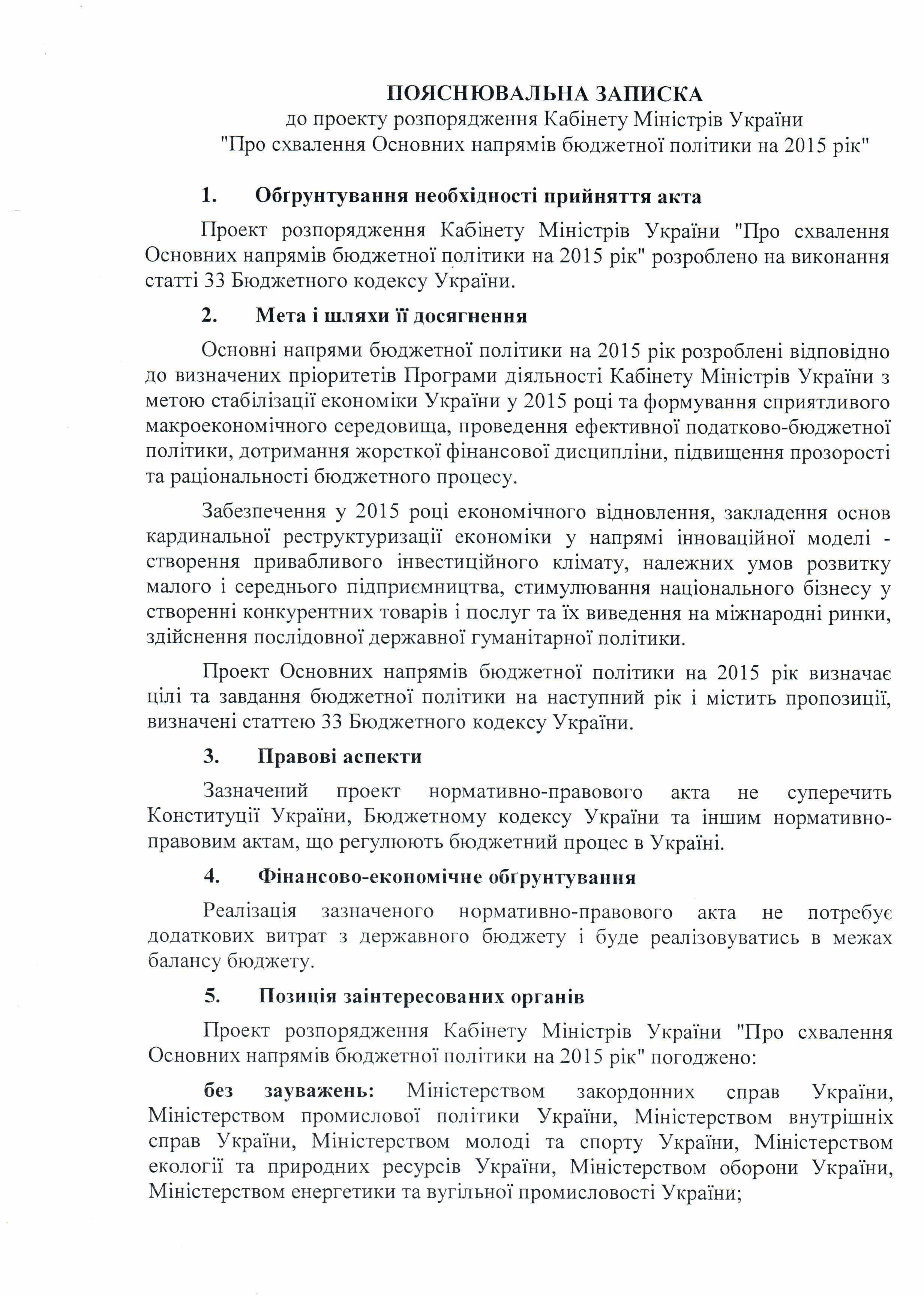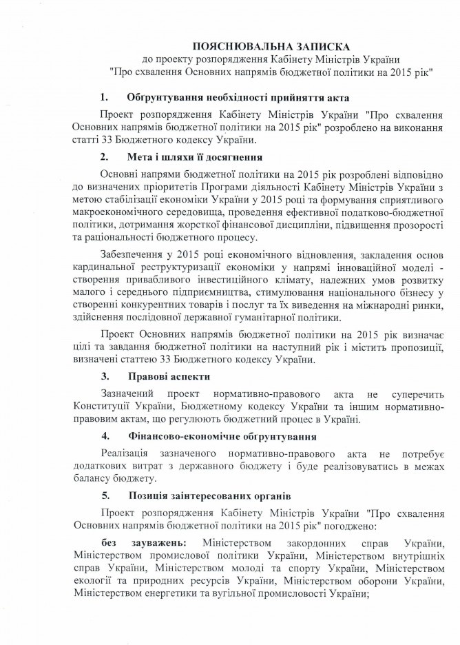 06Тра Коментування вимкнено Проект Основних напрямків бюджетної політики на 2015 рік, поданий Кабінетом Міністрів України на розгляд Верховної Ради України