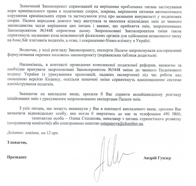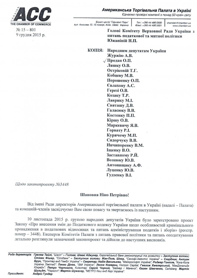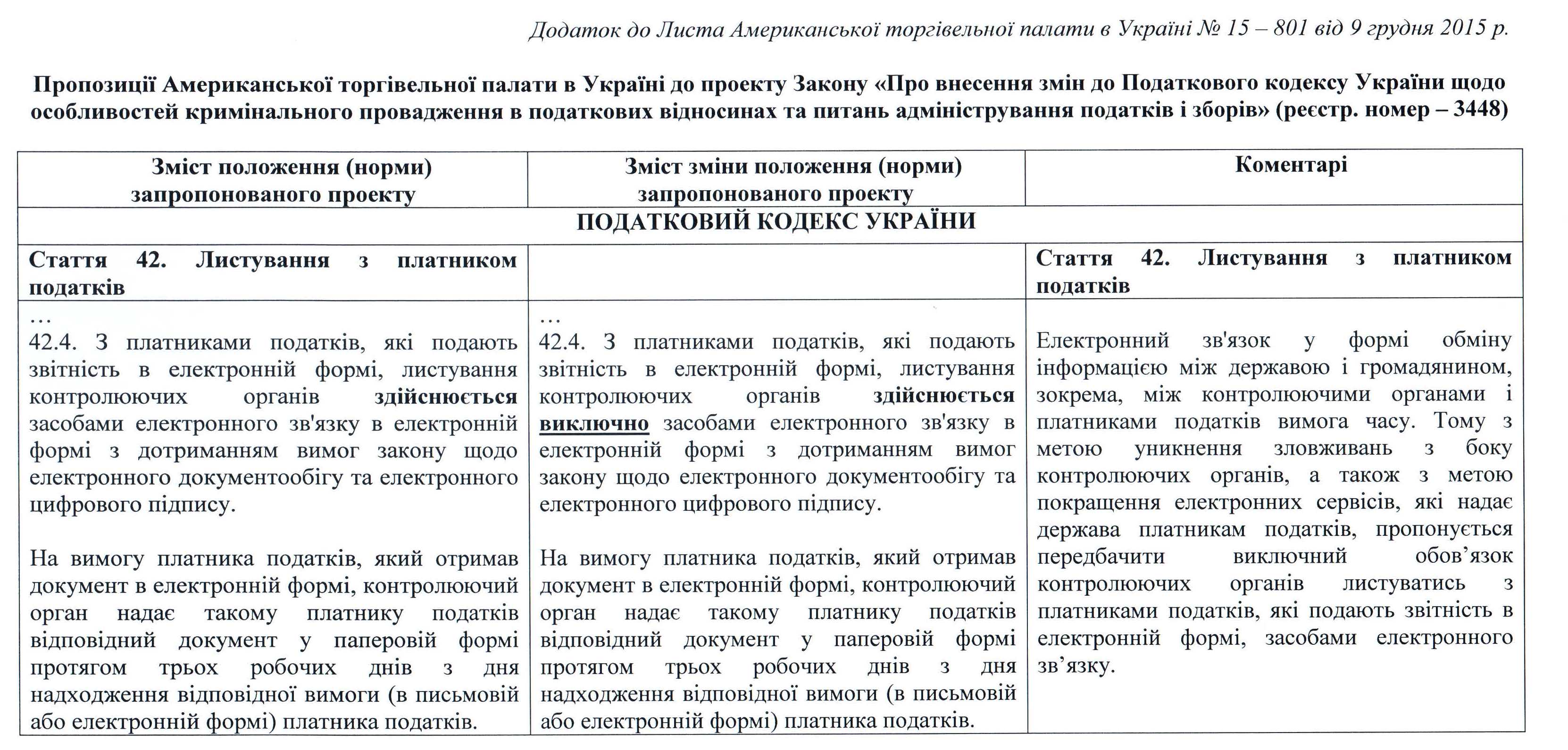Вхідна документація > Пропозиції Американської торгівельної палати в Україні до проекту Закону України “Про внесення змін до Податкового кодексу України щодо особливостей кримінального провадження в податкових відносинах та питань адміністрування податків і зборів”, реєстр. №3448