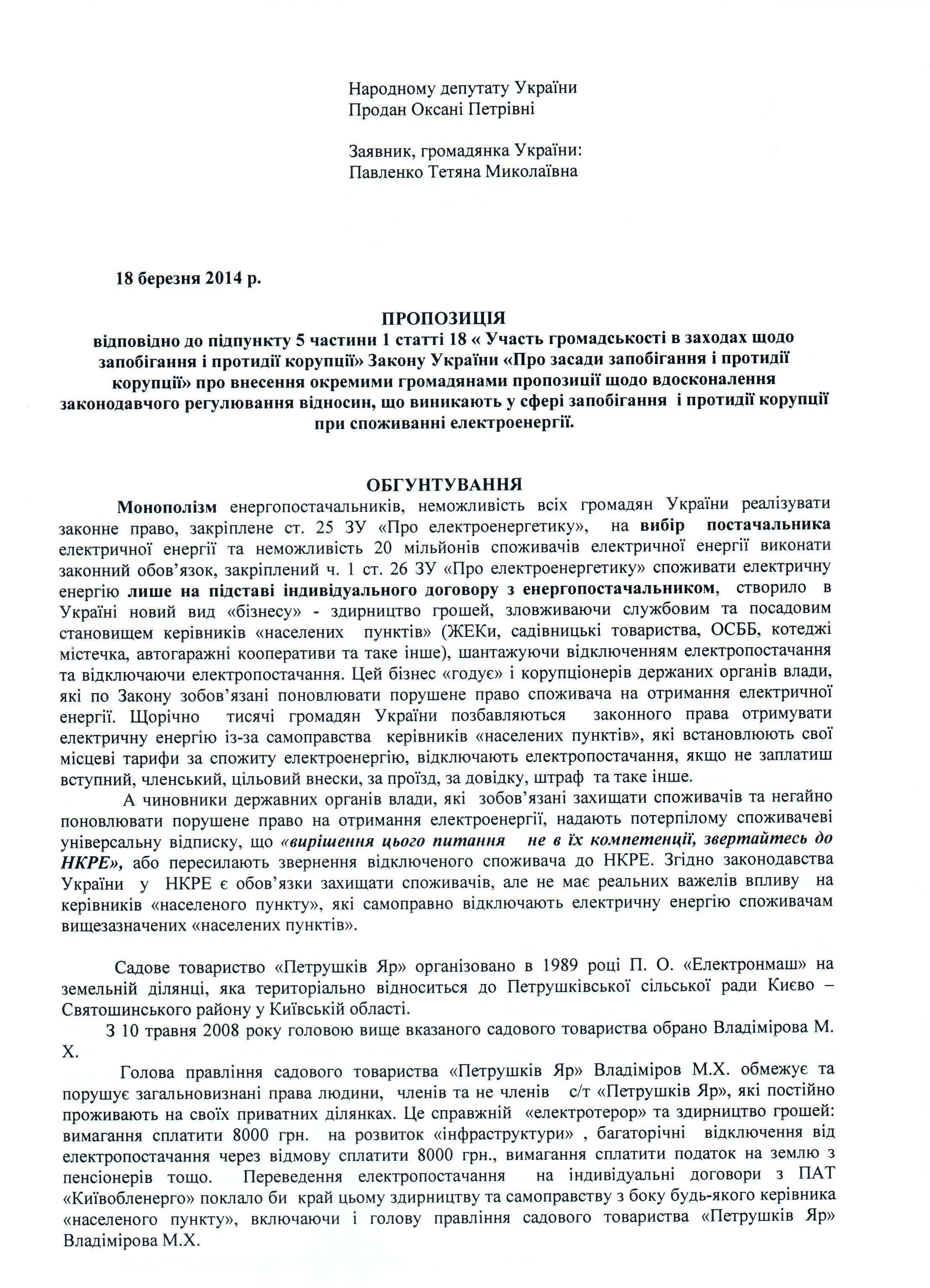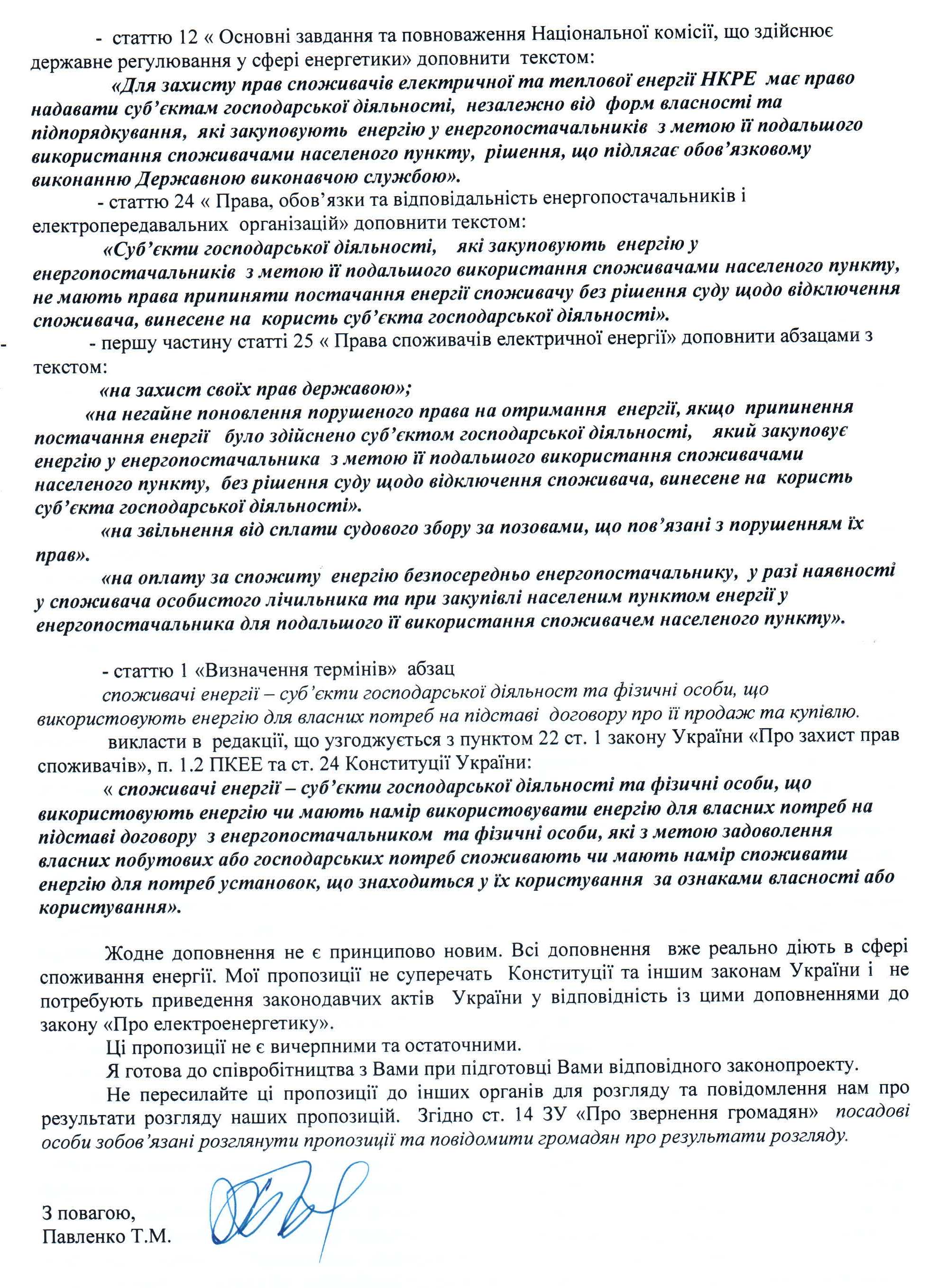 03Кві Коментування вимкнено Пропозиції Т.М. Павленко щодо вдосконалення законодавчого регулювання у сфері електропостачання