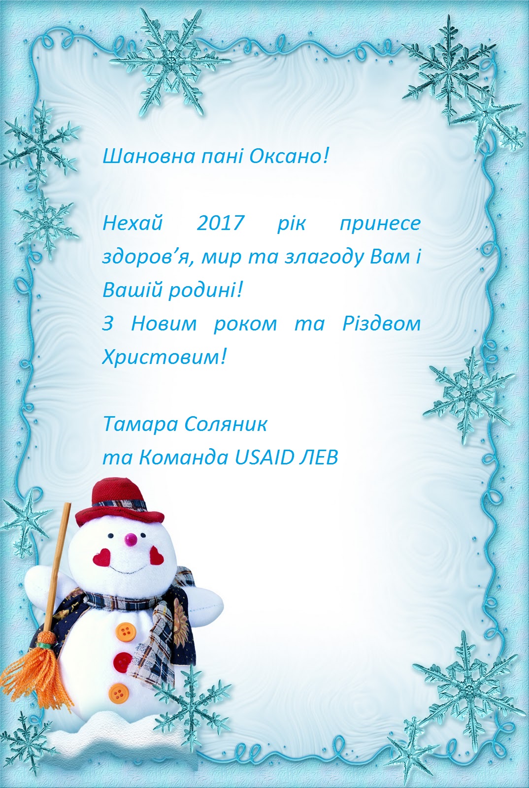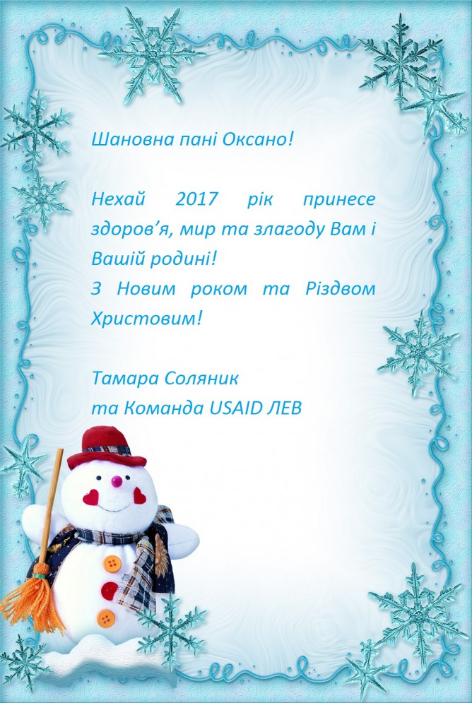 26Гру Коментування вимкнено Привітання з Новорічними та Різдвяними святами від Т. Соляник та Команди USAID ЛЕВ