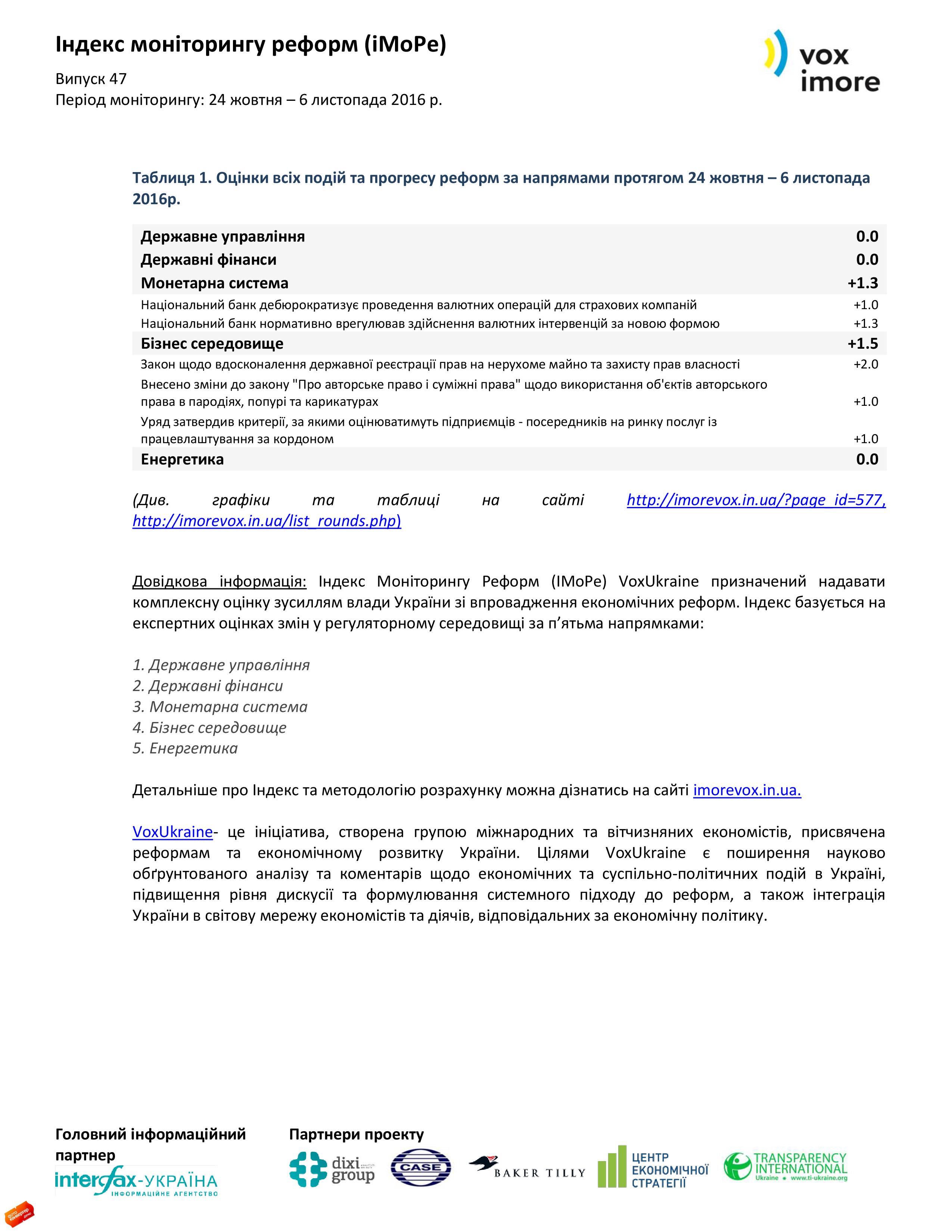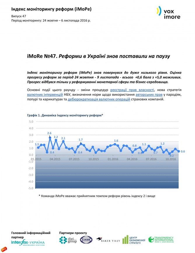 15Лис Коментування вимкнено “Реформи в Україні знов поставили на паузу” Індекс моніторингу реформ (iMoРe) Джерело