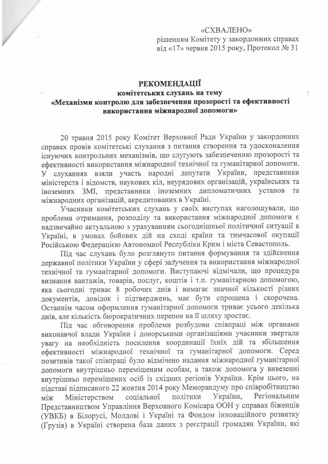 14Лип Коментування вимкнено Рекомендації комітетських слухань на тему “Механізми контролю для забезпечення прозорості та ефективності використання міжнародної допомоги”, проведені Комітетом ВРУ у закордонних справах
