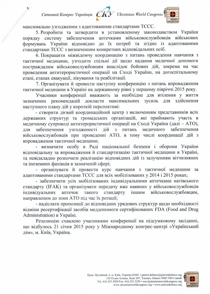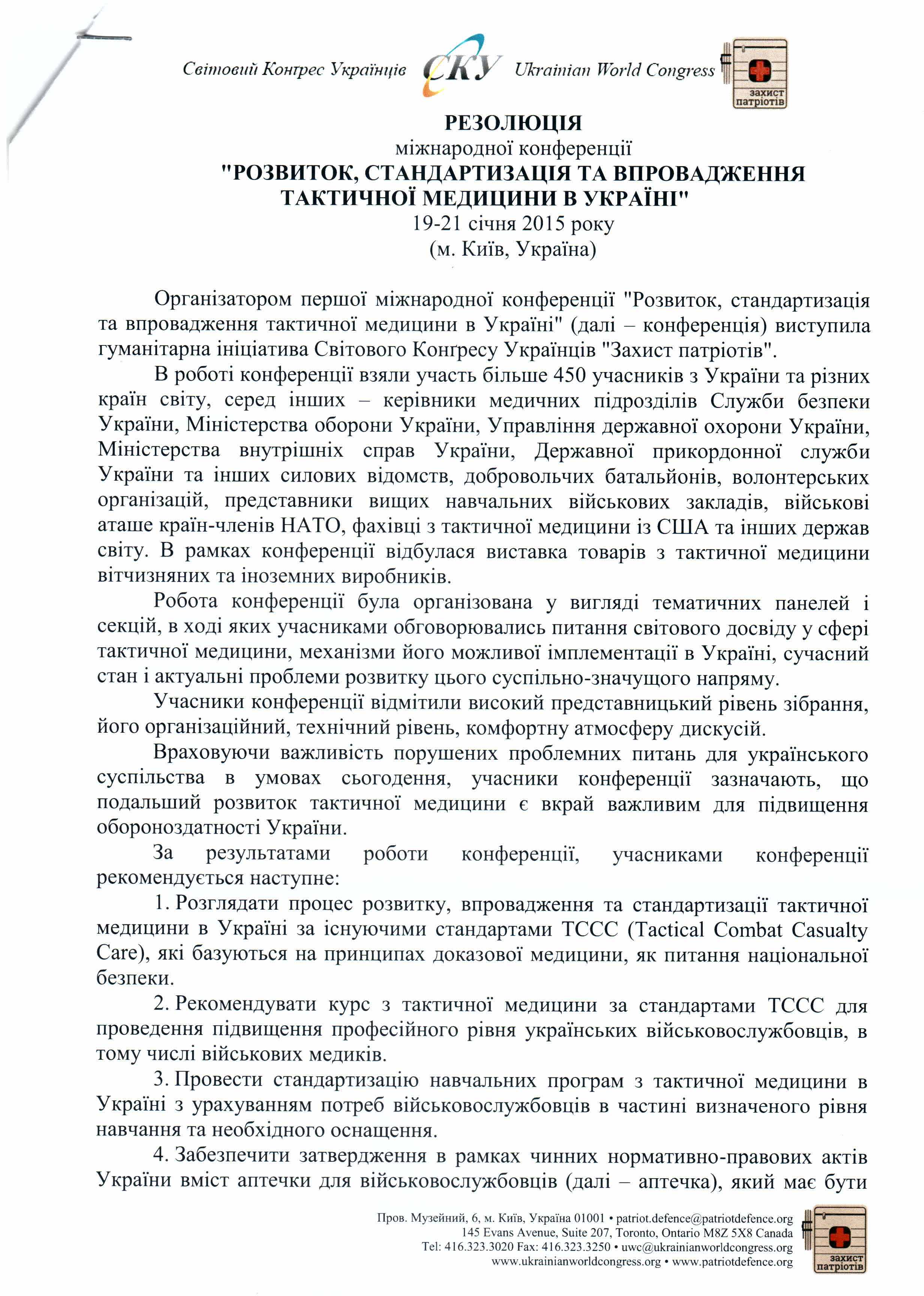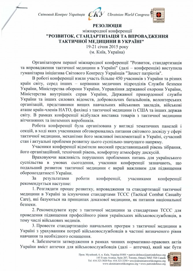 20Лют Коментування вимкнено Резолюція Міжнародної конференції “Розвиток, стандартизація та впровадження тактичної медицини в Україні”