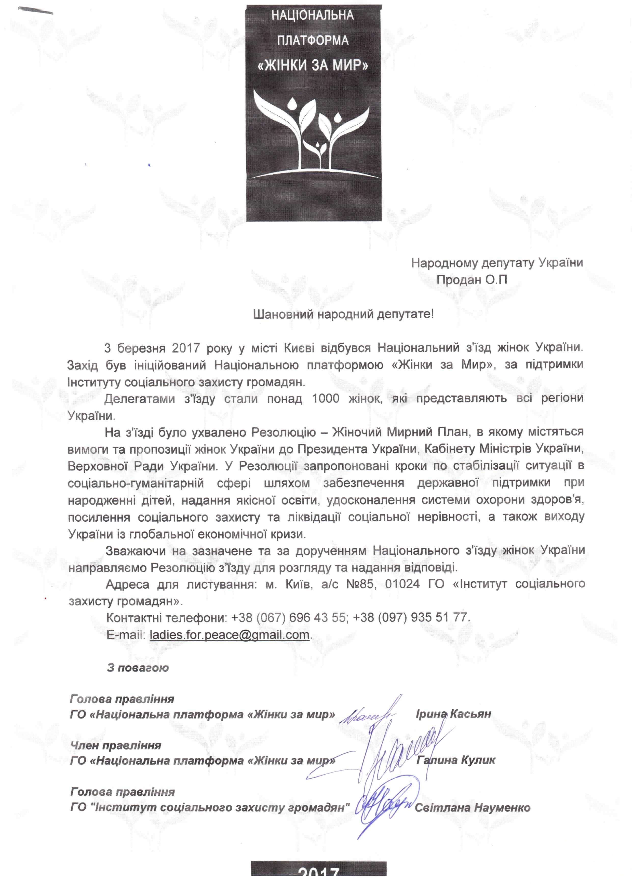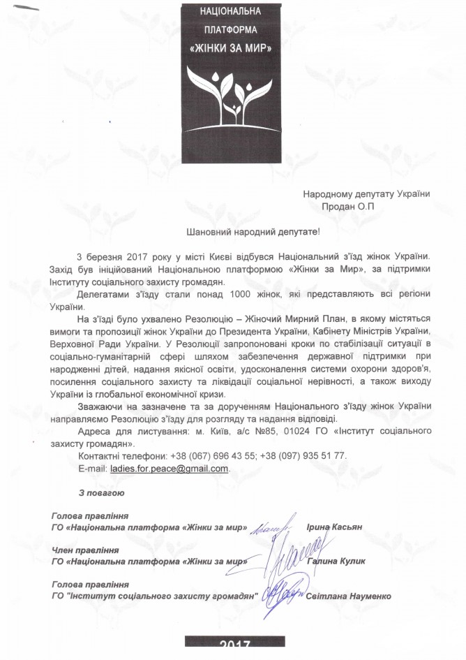 Головна > Верховна Рада України > Вхідна документація > Резолюція Національного з’їзду жінок України, який відбувся 03.03.2017 року