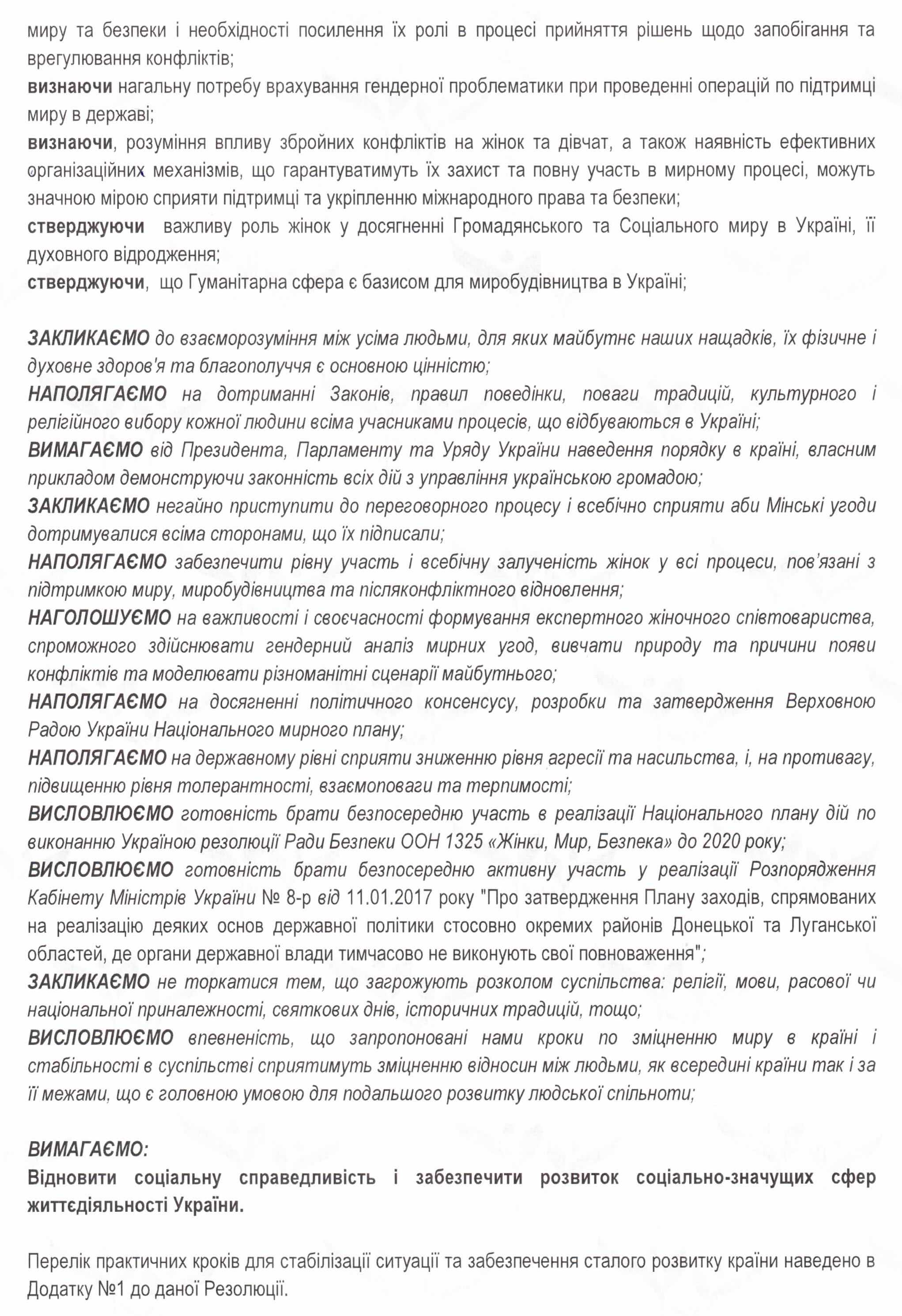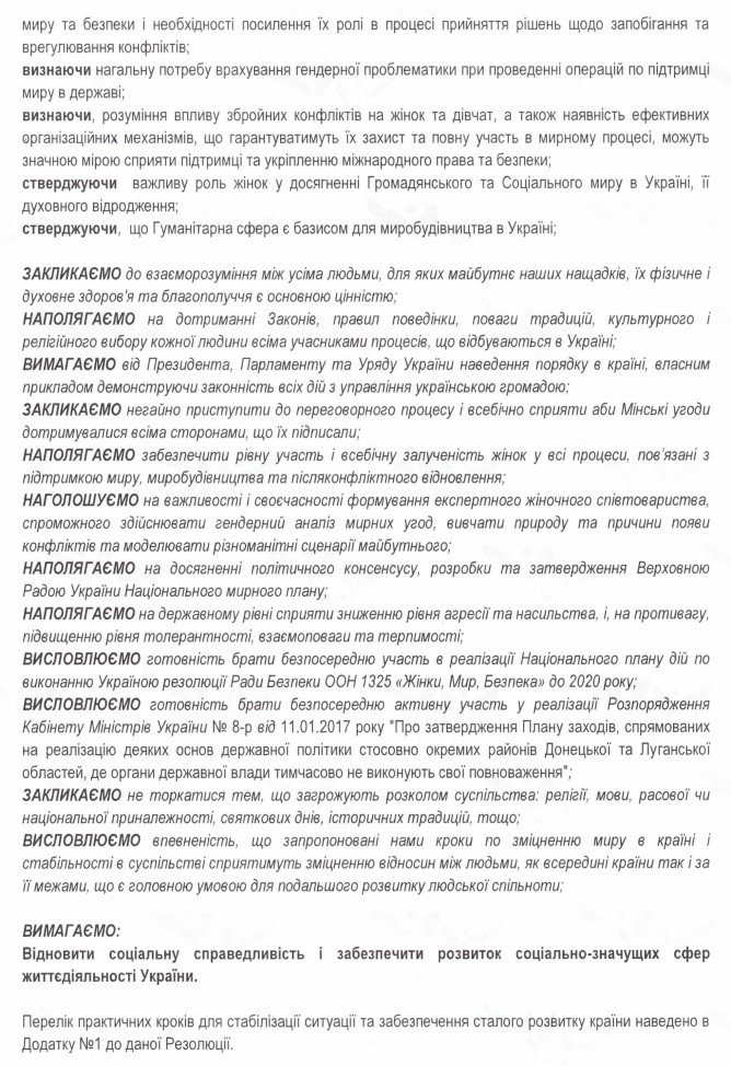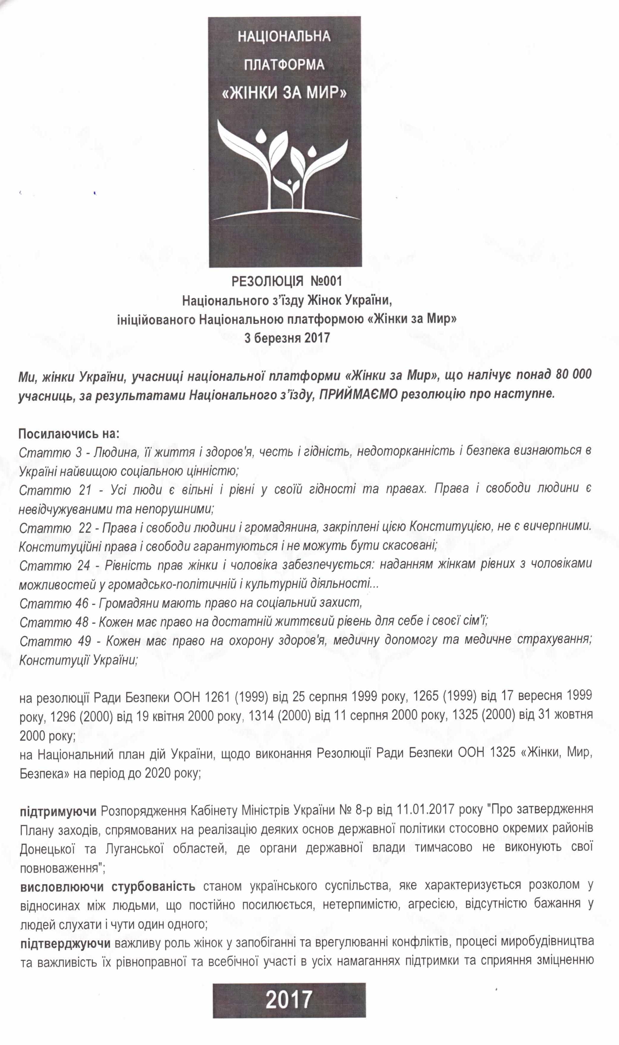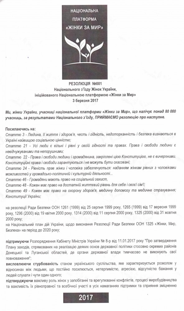 Резолюція Національного з’їзду жінок України, який відбувся 03.03.2017 року