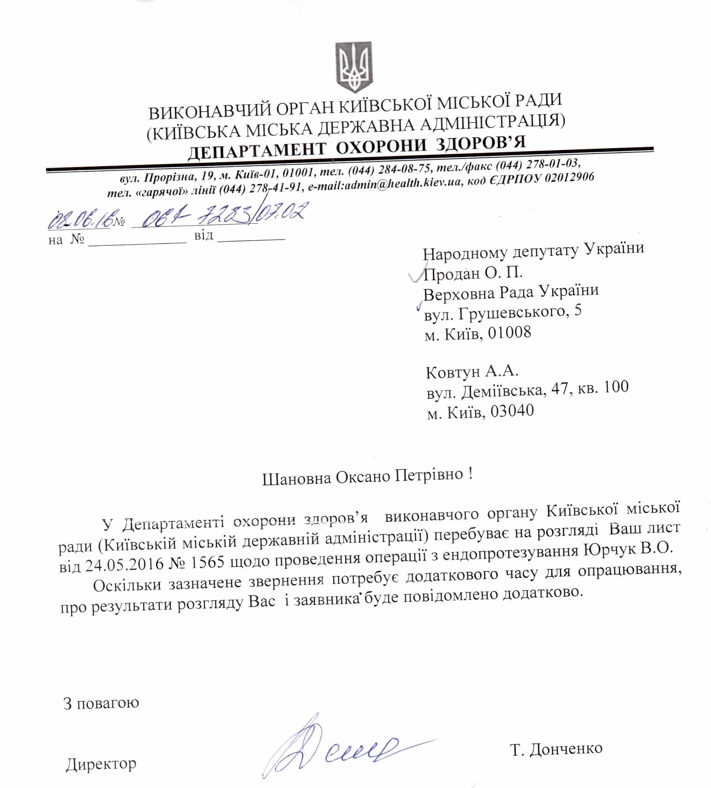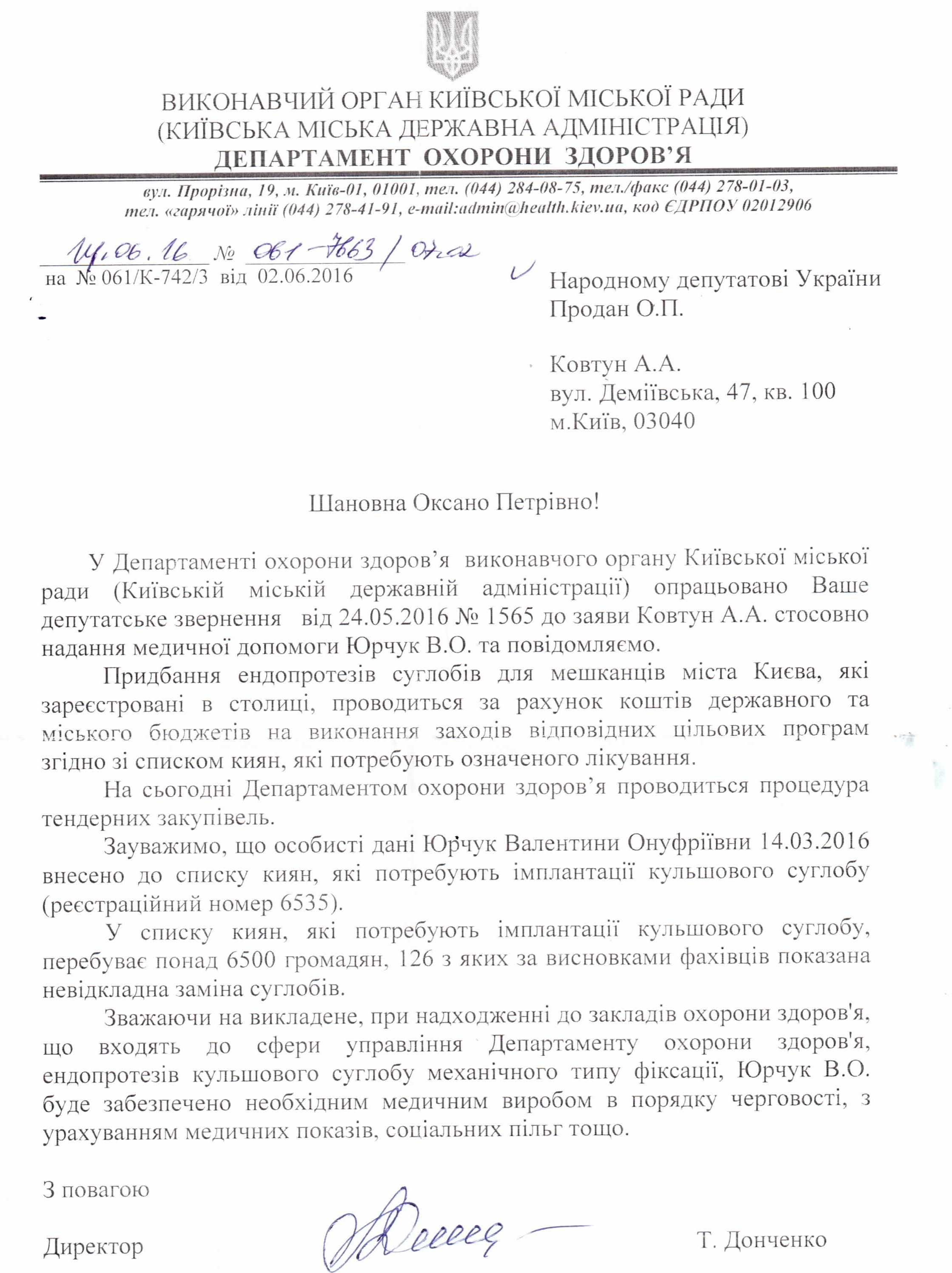 26Лип Коментування вимкнено Відповідь Департаменту охорони здоров’я КМДА на депутатське звернення щодо сприяння в ендопротезуванні ДЕПУТАТСЬКЕ ЗВЕРНЕННЯ
