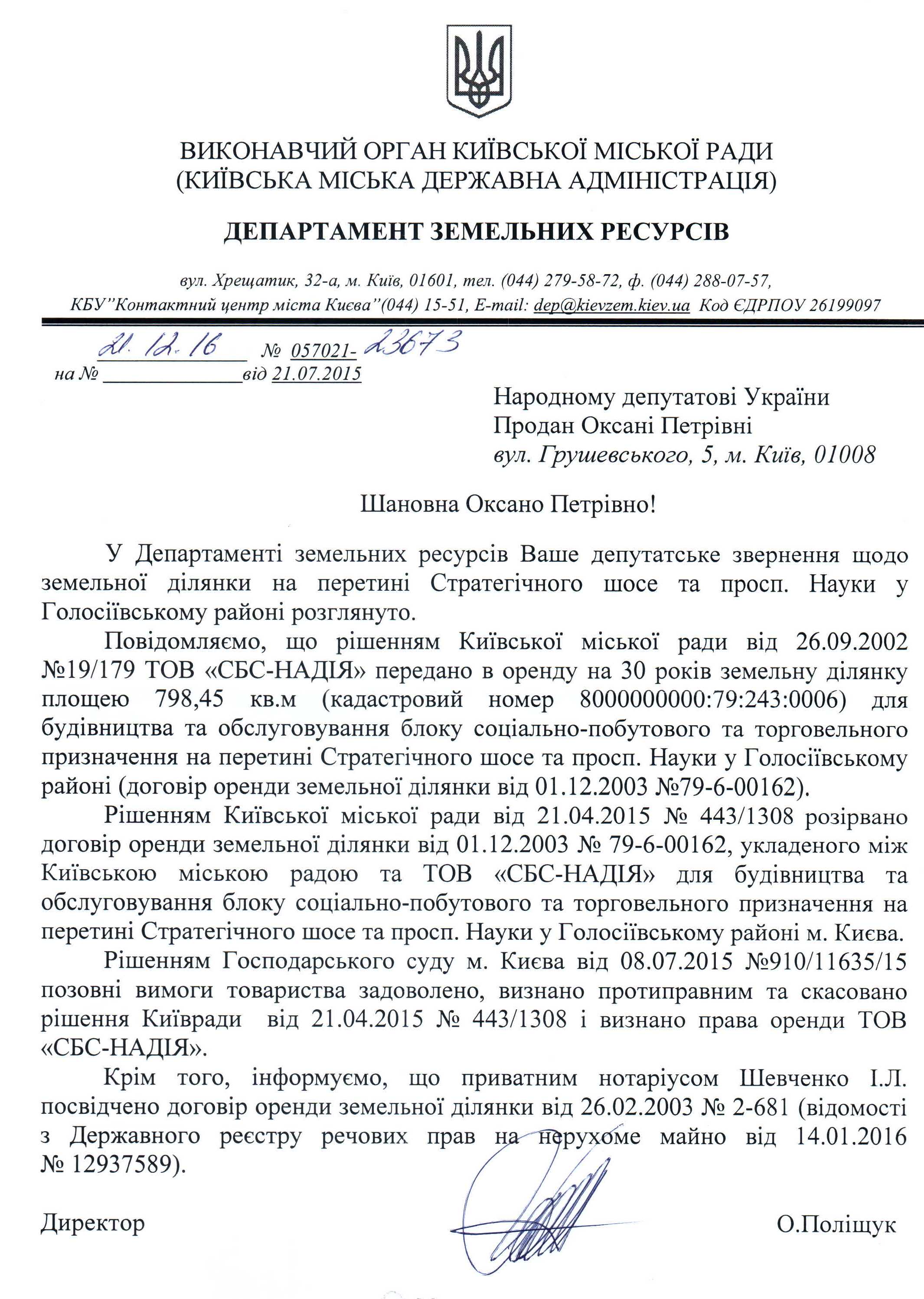 20Січ Коментування вимкнено Відповідь Департаменту земельних ресурсів КМДА на депутатське звернення щодо забудови скверу у Голосіївському районі м. Києва ДЕПУТАТСЬКЕ ЗВЕРНЕННЯ