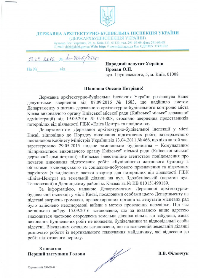 20Жов Коментування вимкнено Відповідь Державної архітектурно-будівельної інспекції України на депутатське звернення щодо будівництва житлового будинку по вул. Здолбунівській в м. Києві ДЕПУТАТСЬКЕ ЗВЕРНЕННЯ