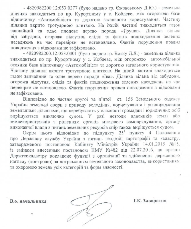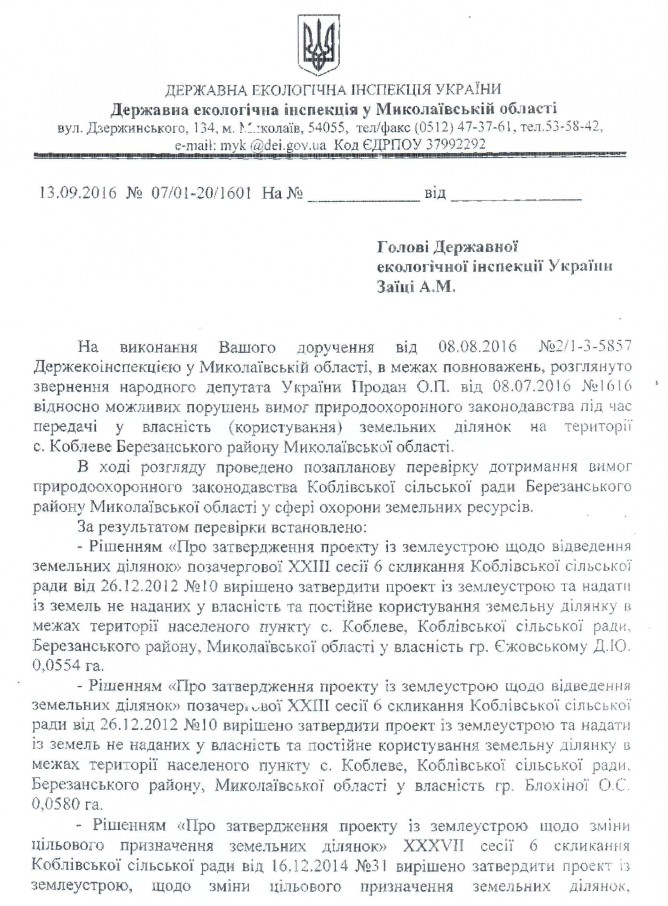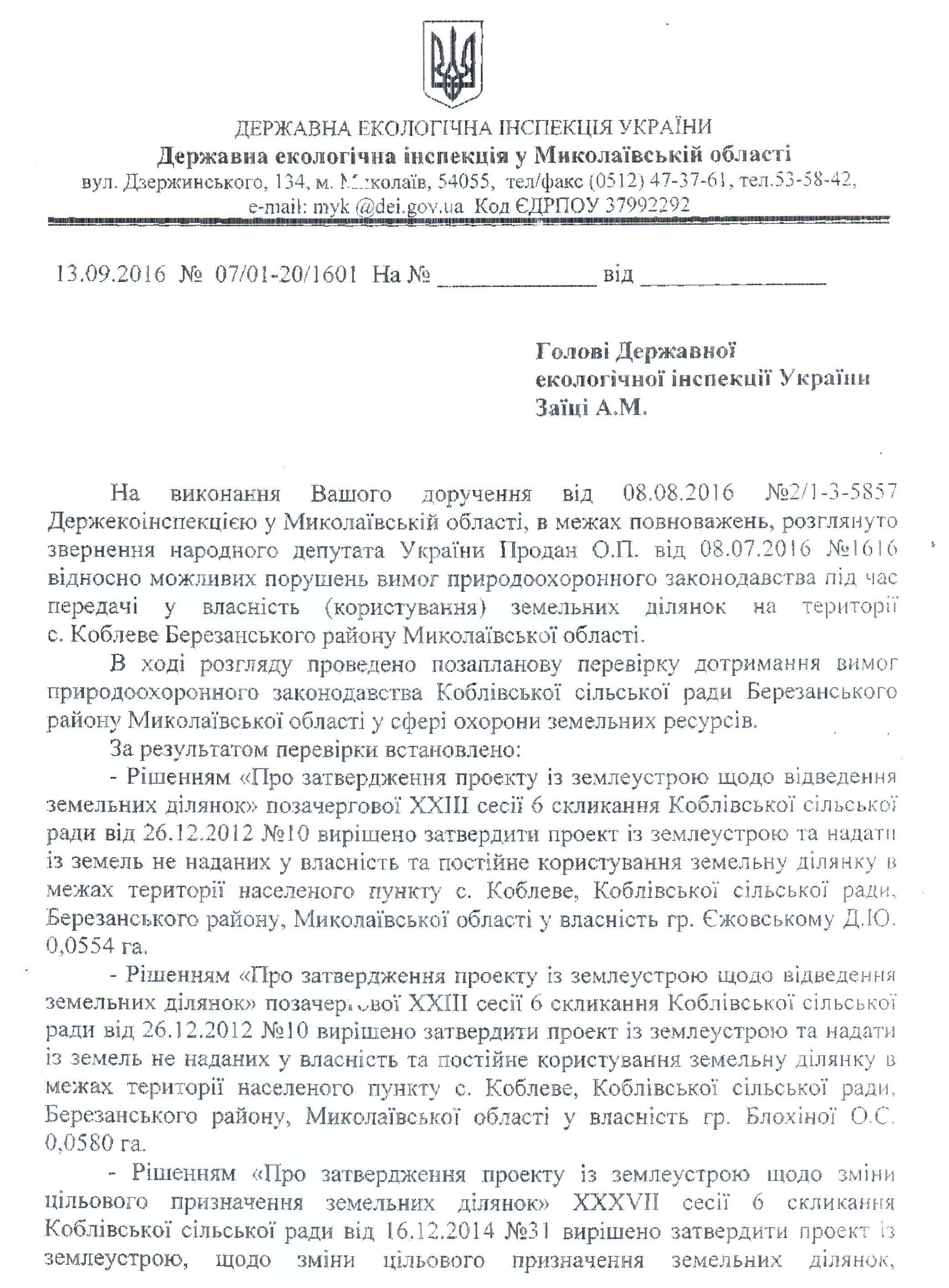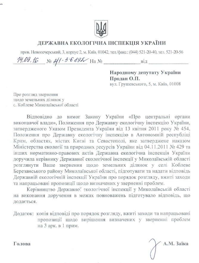 26Жов Коментування вимкнено Відповідь Державної екологічної інспекції України на депутатське звернення щодо можливих порушень земельного законодавства при передачі земельних ділянок у користування у Миколаївській області ДЕПУТАТСЬКЕ ЗВЕРНЕННЯ