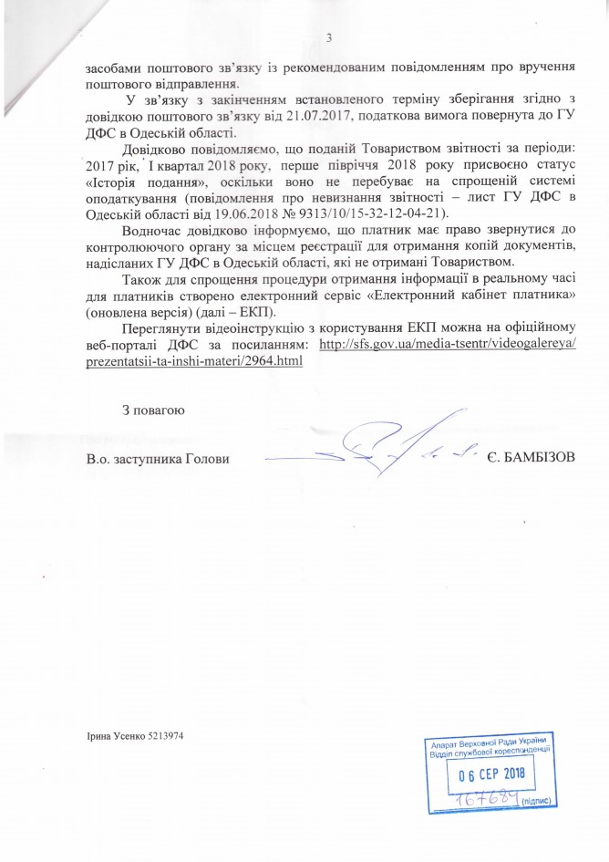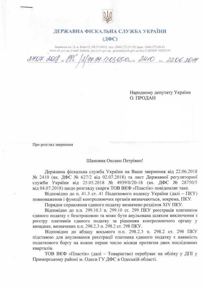 20Сер Коментування вимкнено Відповідь Державної фіскальної служби України на депутатське звернення щодо можливого порушення співробітниками ГУ ДФС в Одеській області податкового законодавства