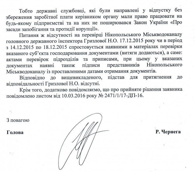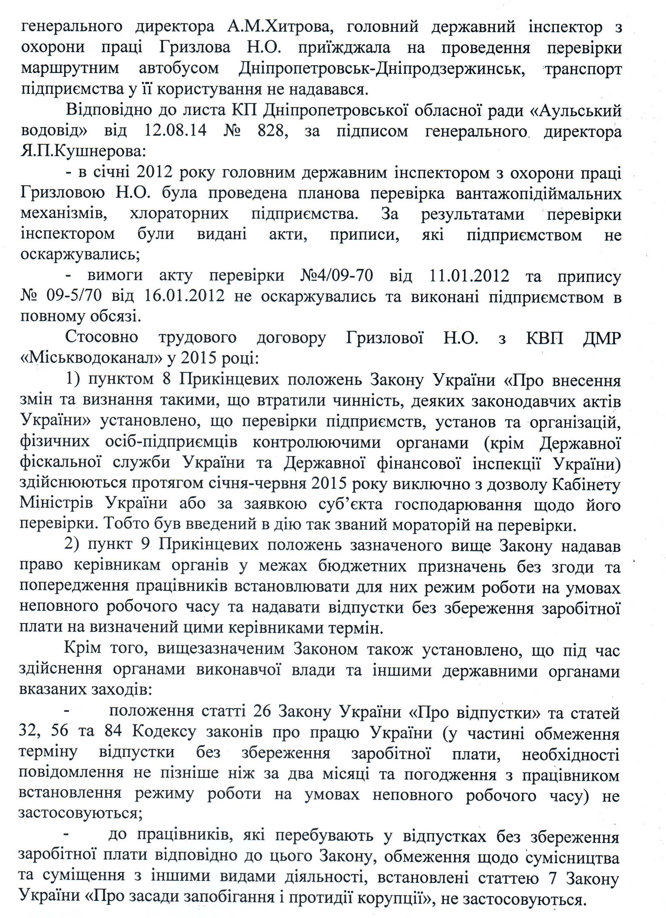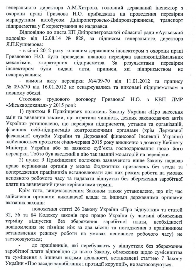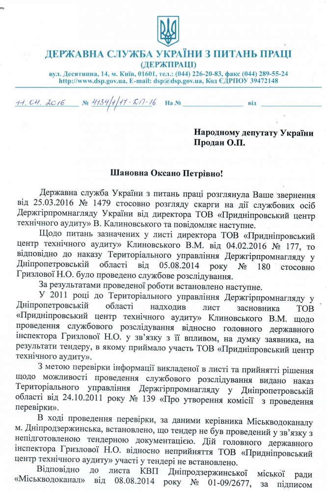 Відповідь Державної служби України з питань праці на депутатське звернення щодо можливого перевищення повноважень службовими особами територіального управління Держгіпромнагляду у Дніпропетровській області