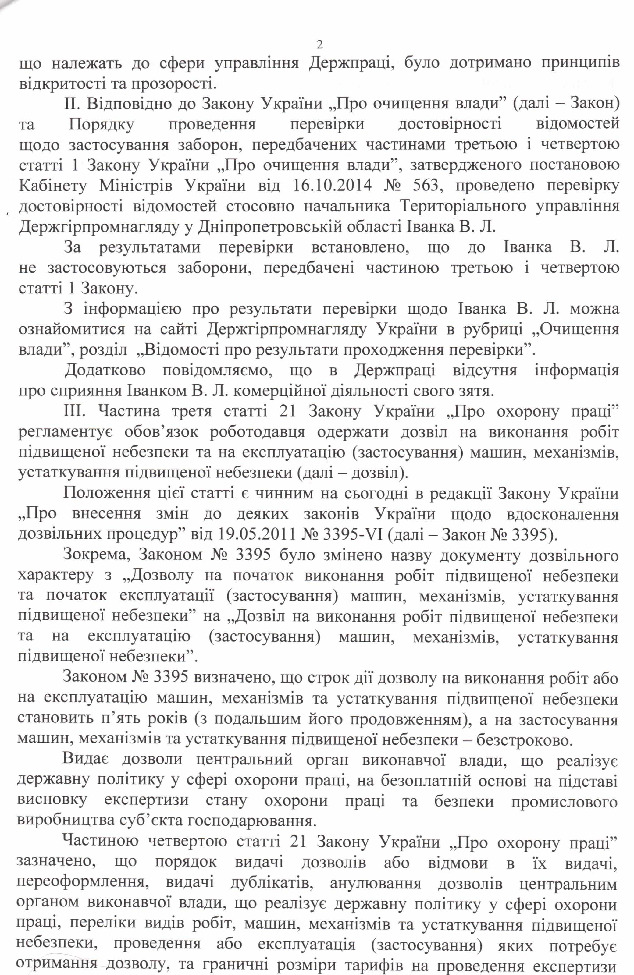 Вхідна документація > Відповідь Державної служби України з питань праці на депутатське звернення щодо можливого перевищення своїх повновжень посадовими особами органів, що належать до сфери управління Державної служби України з питань праці