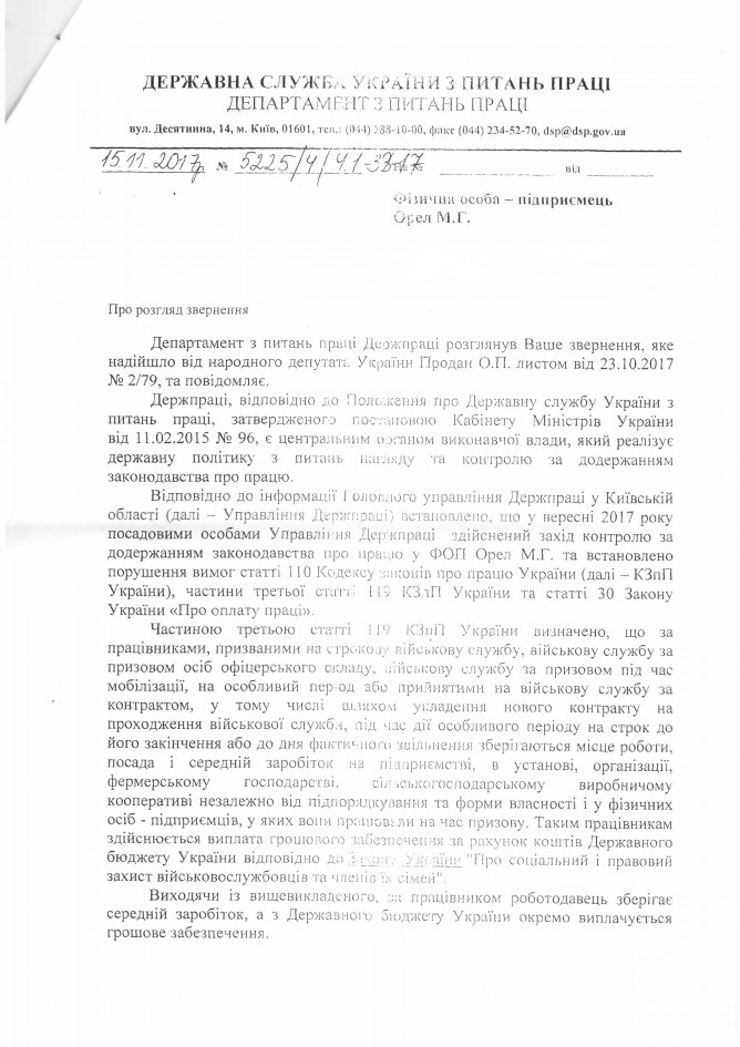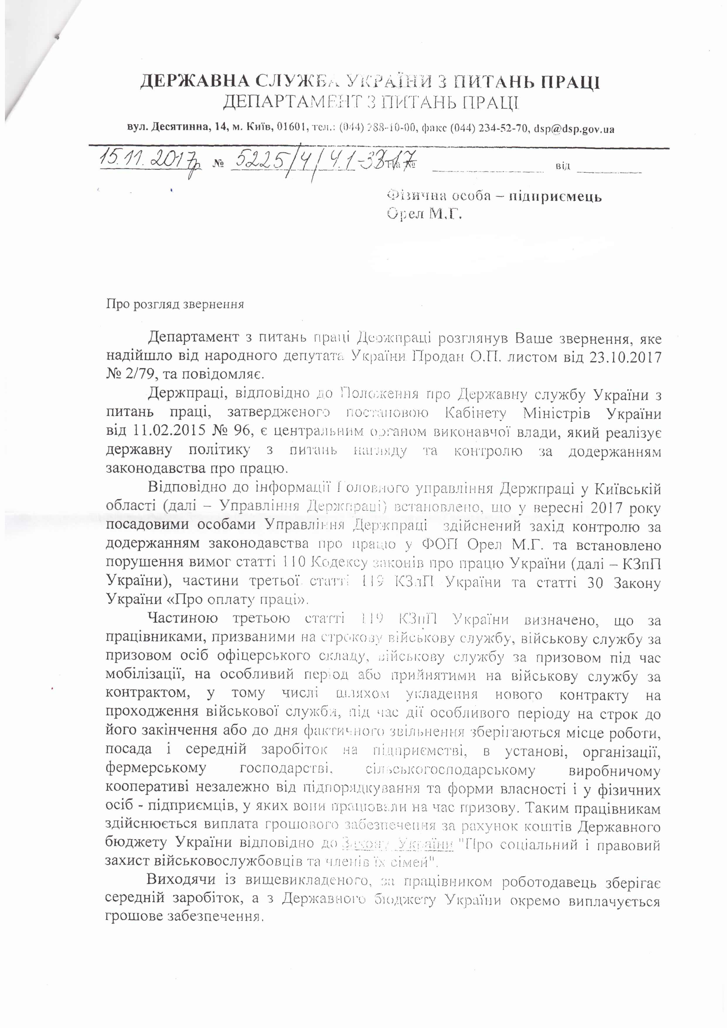 06Гру Коментування вимкнено Відповідь Державної служби України з питань праці на депутатське звернення щодо правомірності застосування штрафних санкцій до підприємця ГУ Держпраці у Київській області ДЕПУТАТСЬКЕ ЗВЕРНЕННЯ