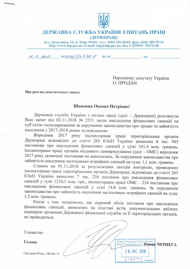 28Лис Коментування вимкнено Відповідь Державної служби України з питань праці на депутатське звернення щодо питань нагляду за додержанням законодавства про працю та зайнятість населення ДЕПУТАТСЬКЕ ЗВЕРНЕННЯ