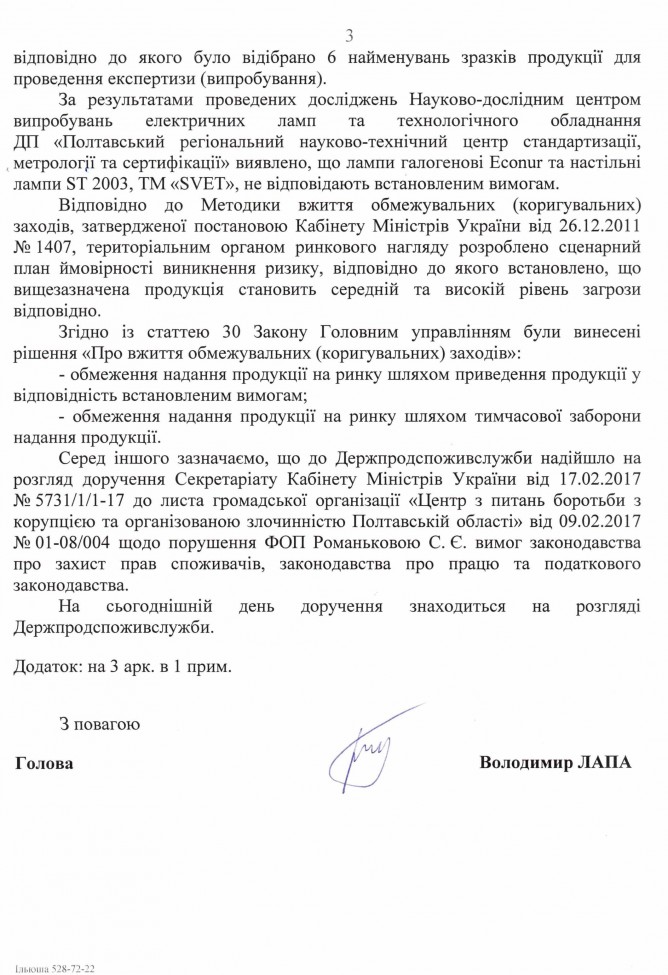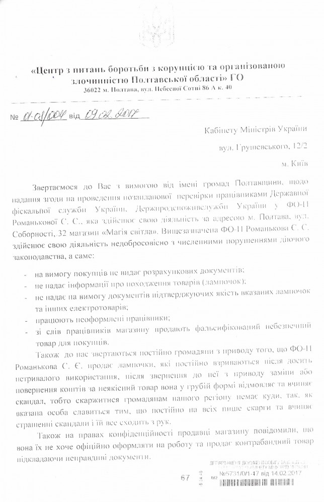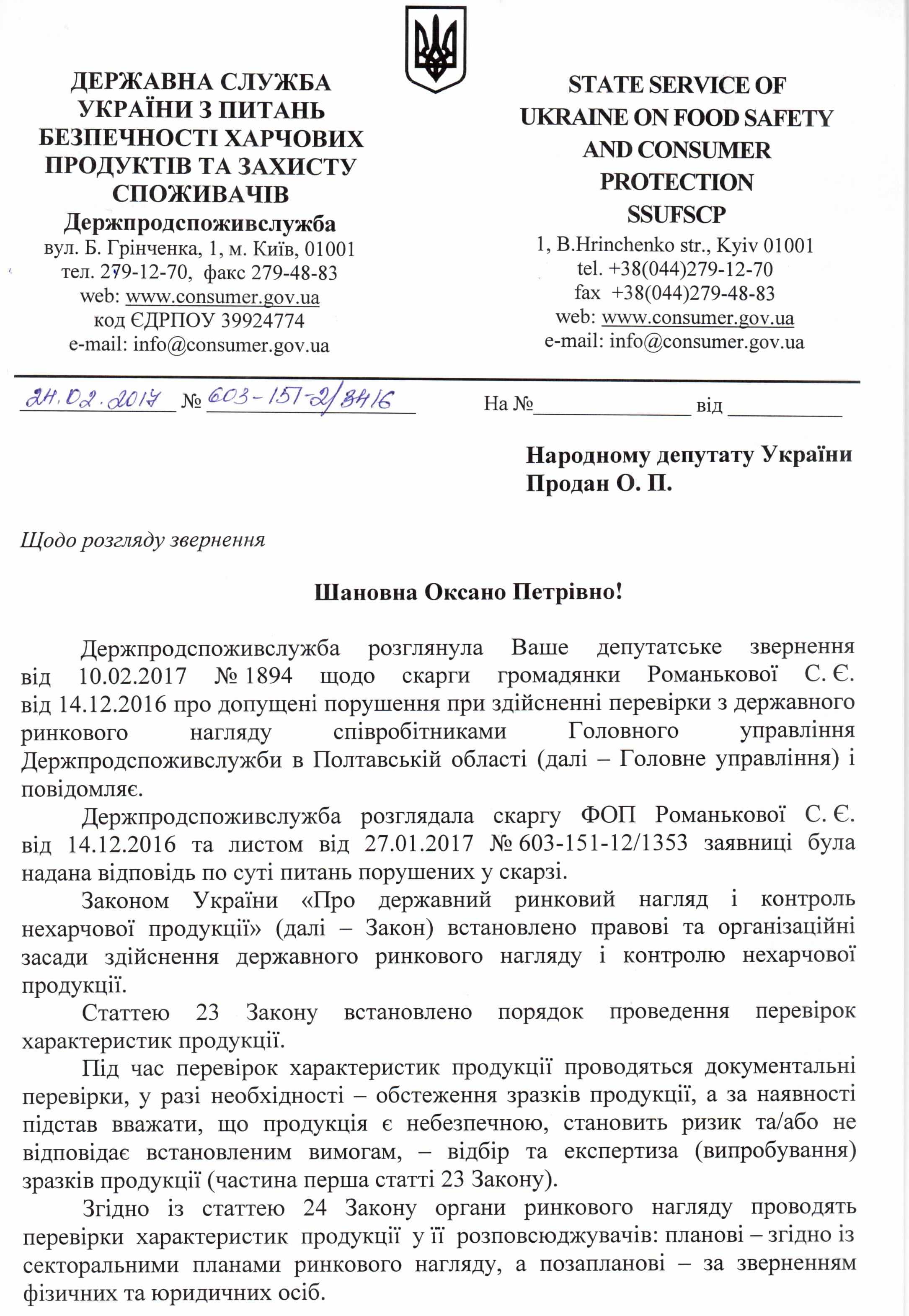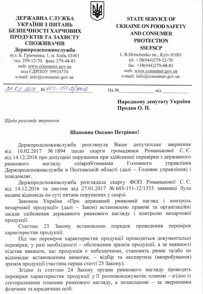 15Бер Коментування вимкнено Відповідь Держпродспоживслужби України на депутатське звернення щодо можливих порушень законодавства співробітниками ГУ Держподспоживслужби в Полтавській області ДЕПУТАТСЬКЕ ЗВЕРНЕННЯ